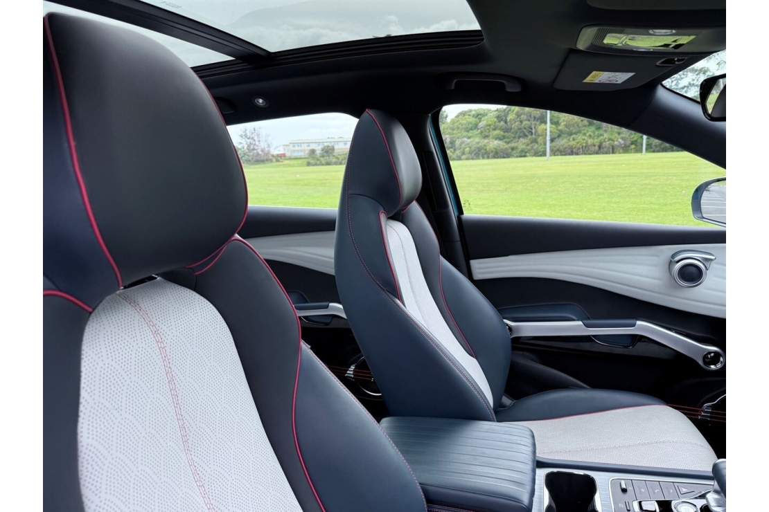 Futuristic cabin featuring a panoramic sunroof with electric slide wireless phone charging Bluetooth Apple CarPlay Android Auto and a digital video recorder. The VTOL Mobile Power Supply function allows the vehicle to power tools appliances or devices making it incredibly useful for camping worksites or emergencies.