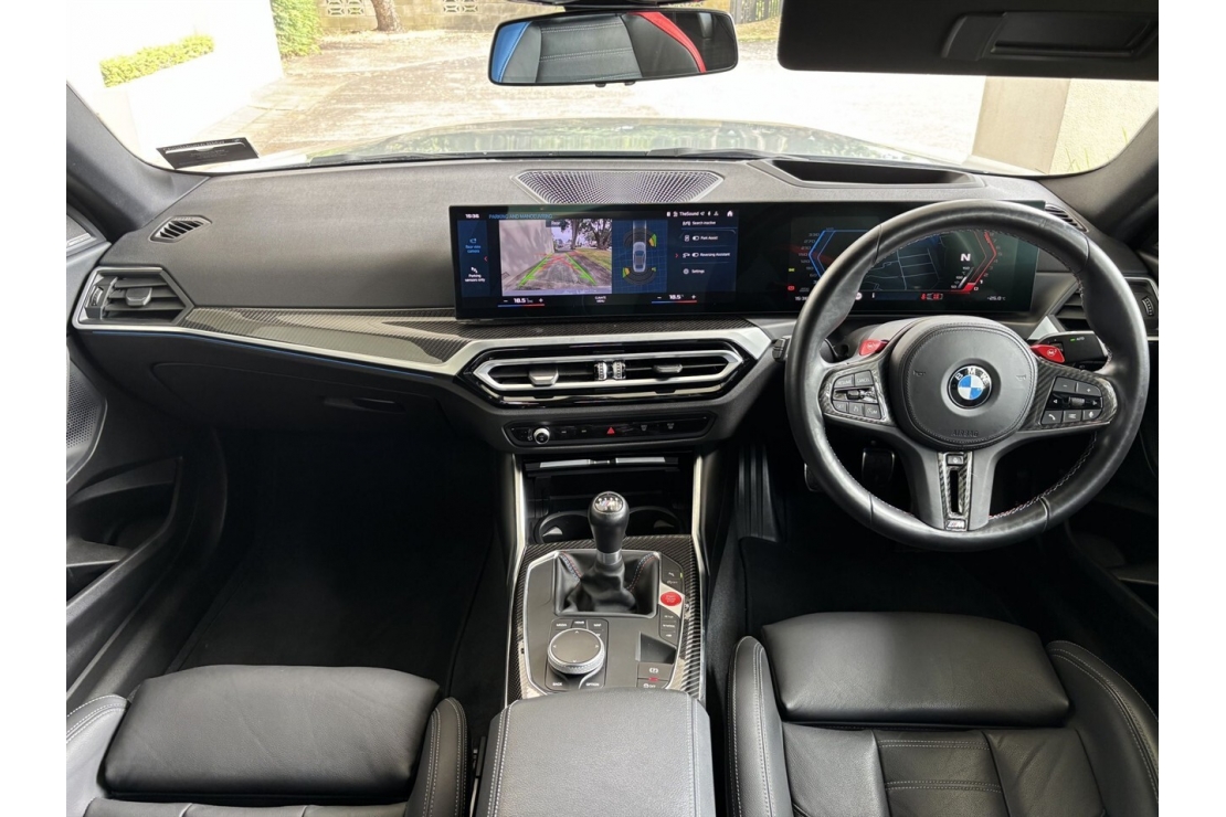 Full black leather interior is enhanced with signature M stitching, aluminium and carbon fibre style interior trims, and illuminated M detailing. The full digital dash and large curved touchscreen infotainment system create a modern driver focused cockpit, complete with Apple CarPlay, Android Auto, and Bluetooth connectivity