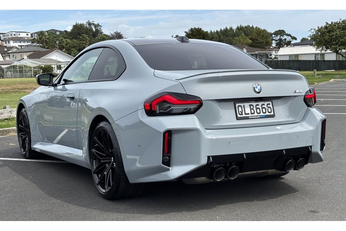 NZ new 2024 BMW M2 finished in stunning Nardo Grey is a pure performance coupe built for true driving enthusiasts. Sitting aggressively on factory 20 inch alloy wheels with quad exhaust outlets and wide M body styling