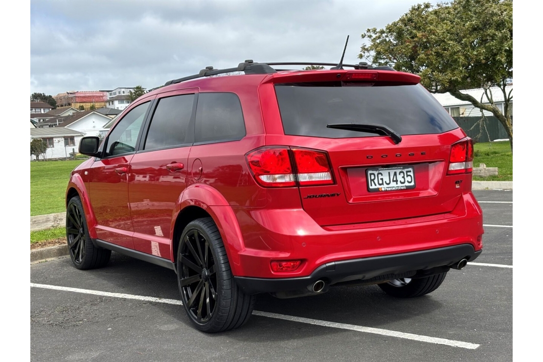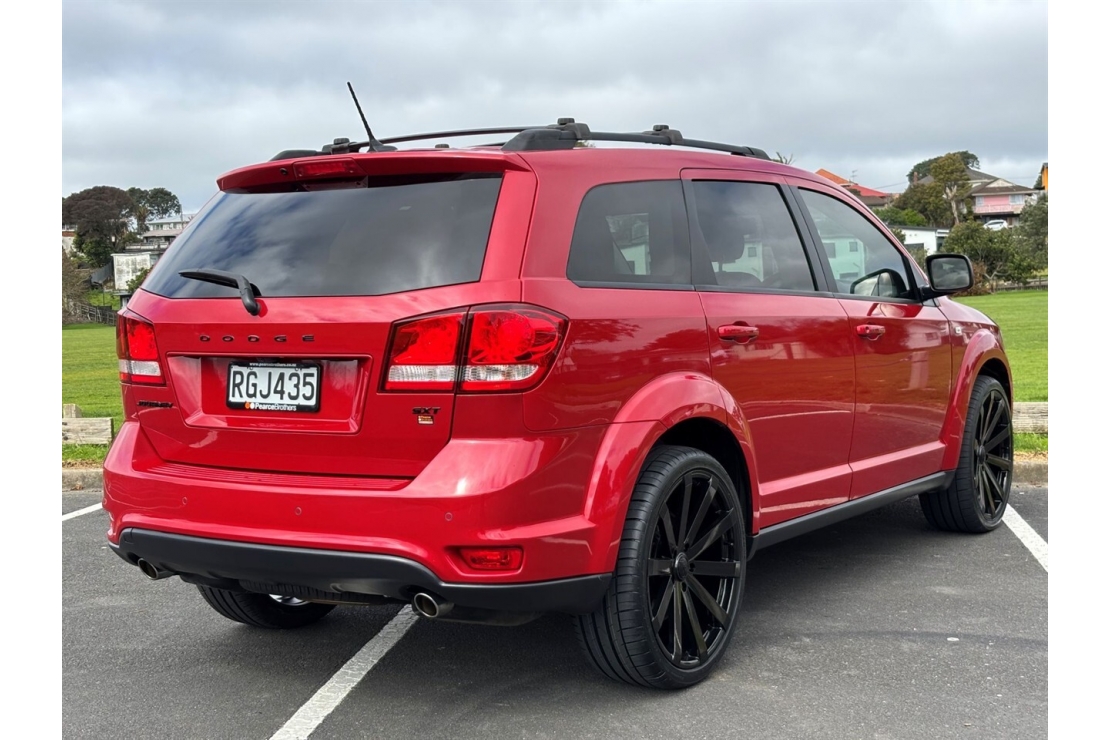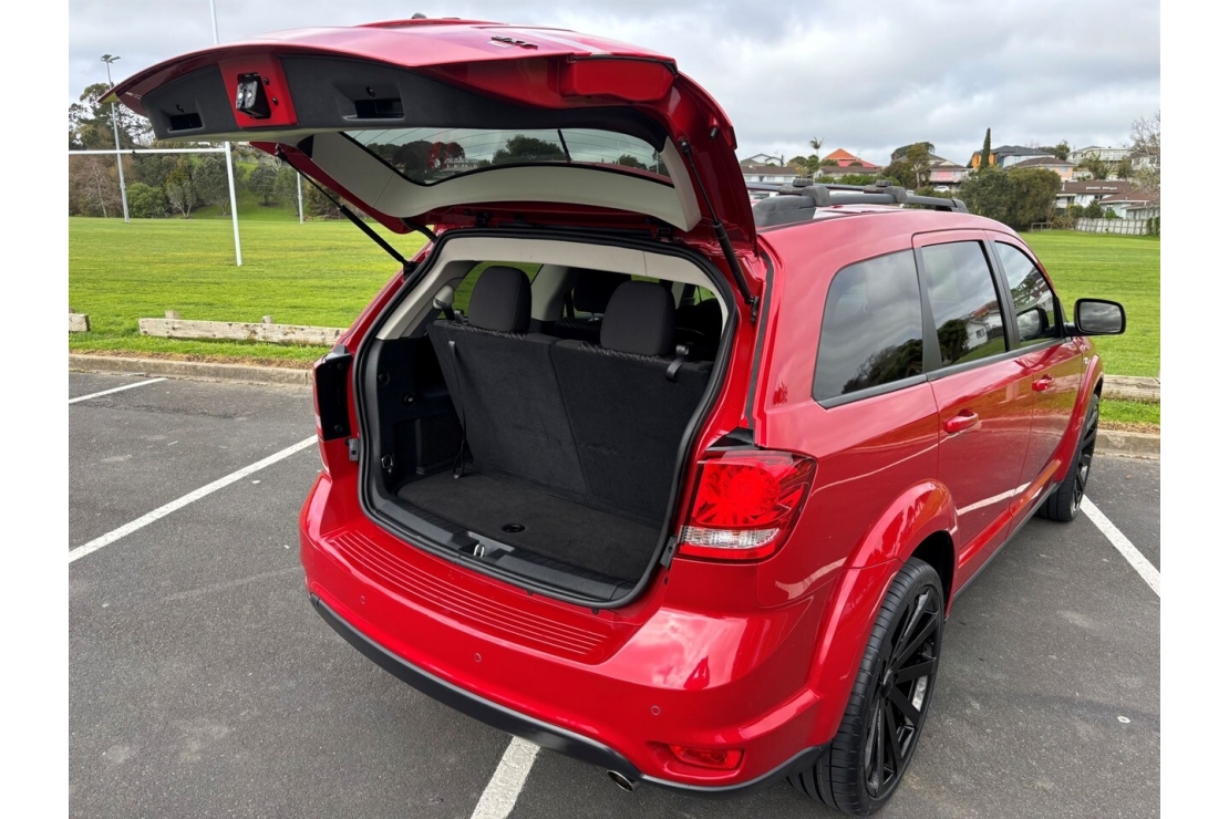 A versatile family SUV with American style, this NZ New 2015 Dodge Journey SXT is a low mileage, one-owner example, finished in striking Red with a sharp custom blackout and sitting on brand new 22" alloys and tyres. Powered by a strong 3.6L V6 petrol engine with automatic transmission, it offers smooth performance and plenty of space for the whole family.