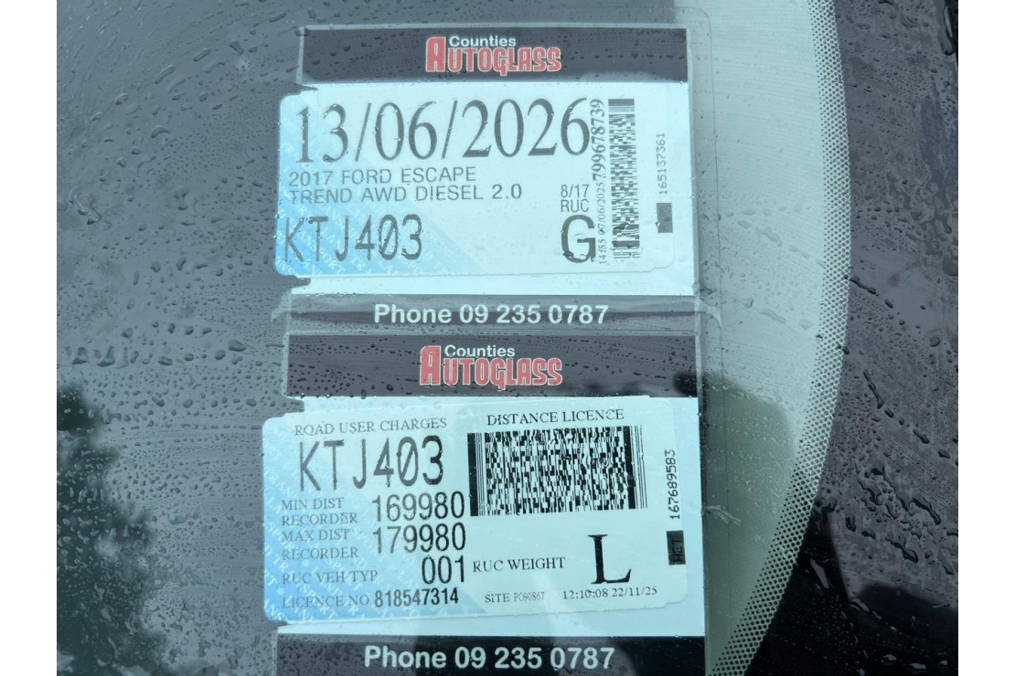 A tidy 2017 Ford Escape finished in white, featuring all-wheel drive and a strong yet economical 2.0 L turbo diesel engine. The AWD system delivers confident traction in varied conditions, while the diesel powertrain offers sensible fuel consumption for daily driving or longer journeys. With a roomy interior and sensible cargo space, this Escape blends comfort, practicality, and efficiency into a versatile SUV package, great for families, commuters, or adventurers alike.Ford-Escape-TREND-AWD-2.0-DIESEL-B...-2017/6898/6898