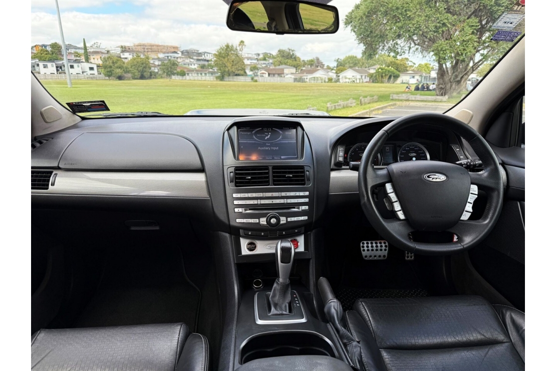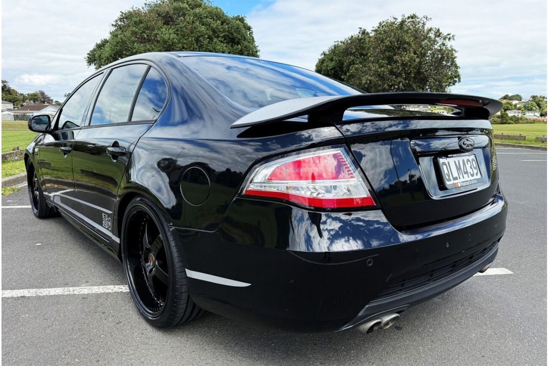 Inside, the cabin is finished in full black leather sports trim, featuring FPV sports seating, a multifunction steering wheel, cruise control, push button start, and Ford build number 427
