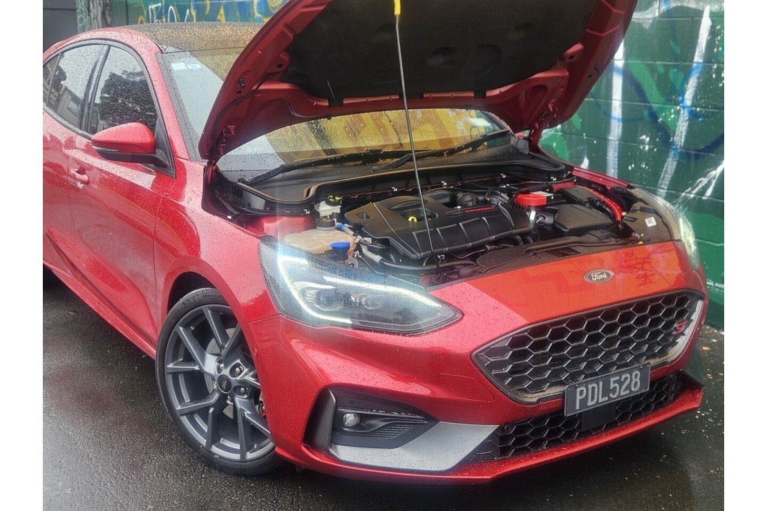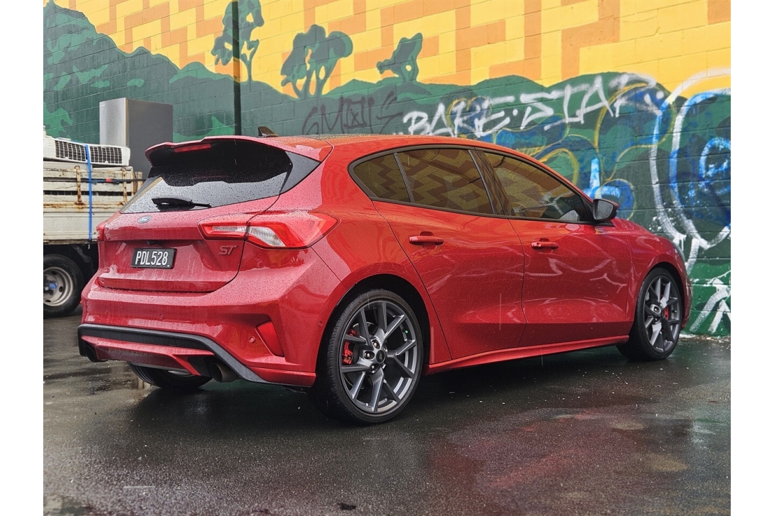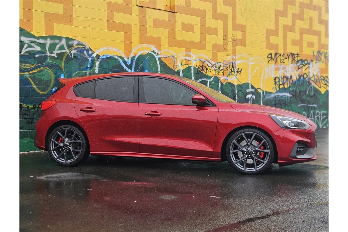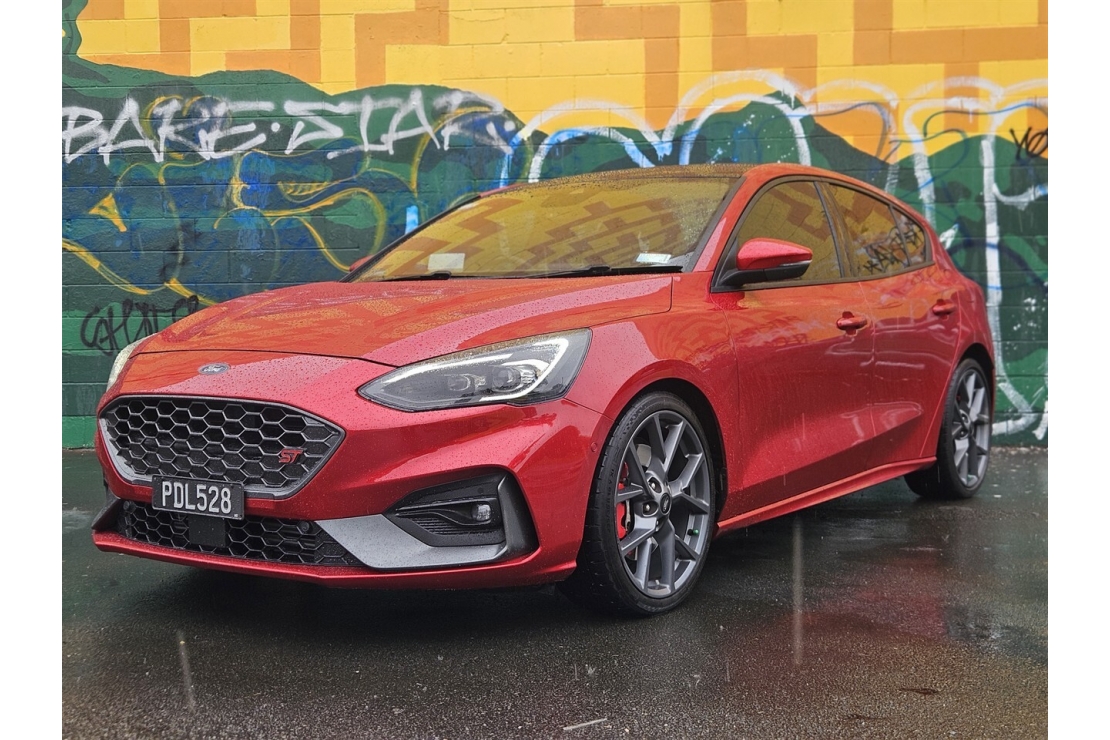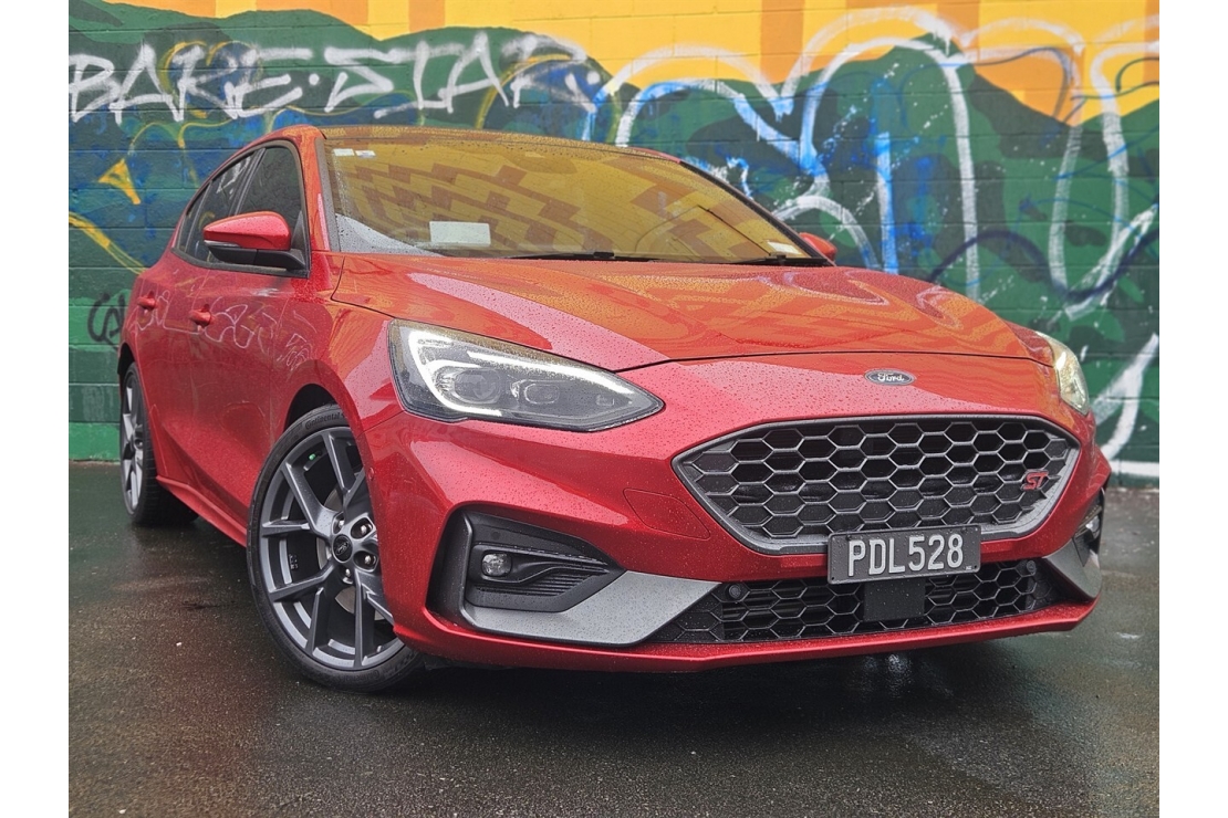 CHECK THIS OUT 2022 Ford Focus ST 2.3 Turbo Petrol Auto NZ New in Hot Pepper Red with 19" Alloys, Panoramic Sunroof, and Good Service History!