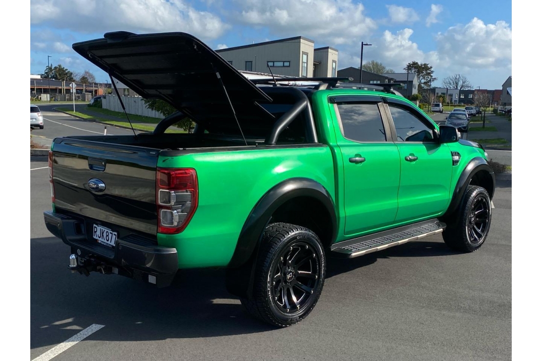 Stand out from the crowd in this one-of-a-kind Ford Ranger Wildtrak, fully wrapped in a stunning custom metallic green that turns heads wherever it goes. This isnt just a ute its a statement. Powered by a tough 3.2L turbo diesel engine and paired with a smooth automatic transmission and true 4x4 capability, its built to handle both the daily grind and serious off-road adventures.