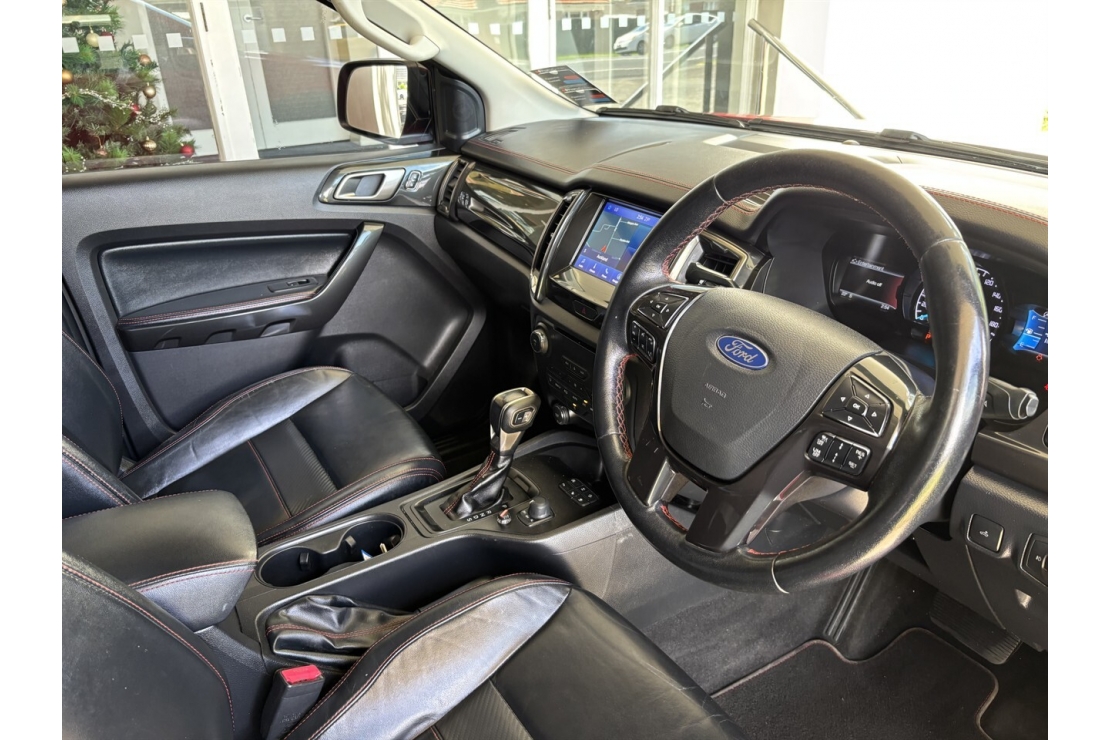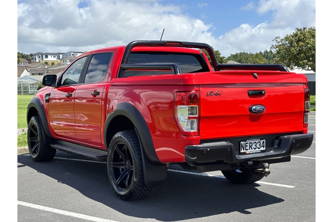 This 2020 Ford Ranger FX4 is a seriously sharp looking 4WD beast finished in standout Red with a full custom blackout and aggressive flared guards. Sitting on brand new 20 inch alloys and tyres with running boards rear sports bars a colour matched hard lid and a deck liner this FX4 has the stance and presence that turns heads everywhere it goes.