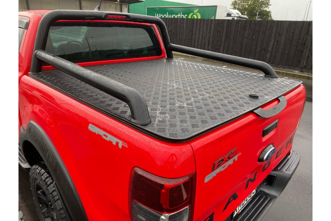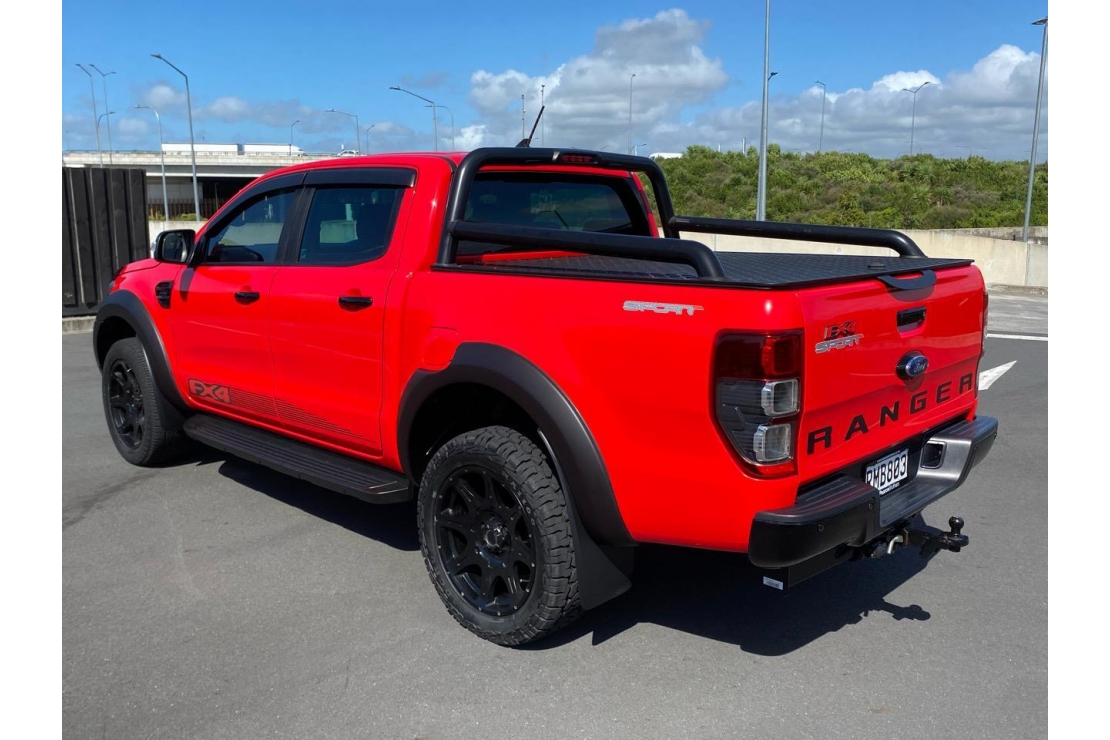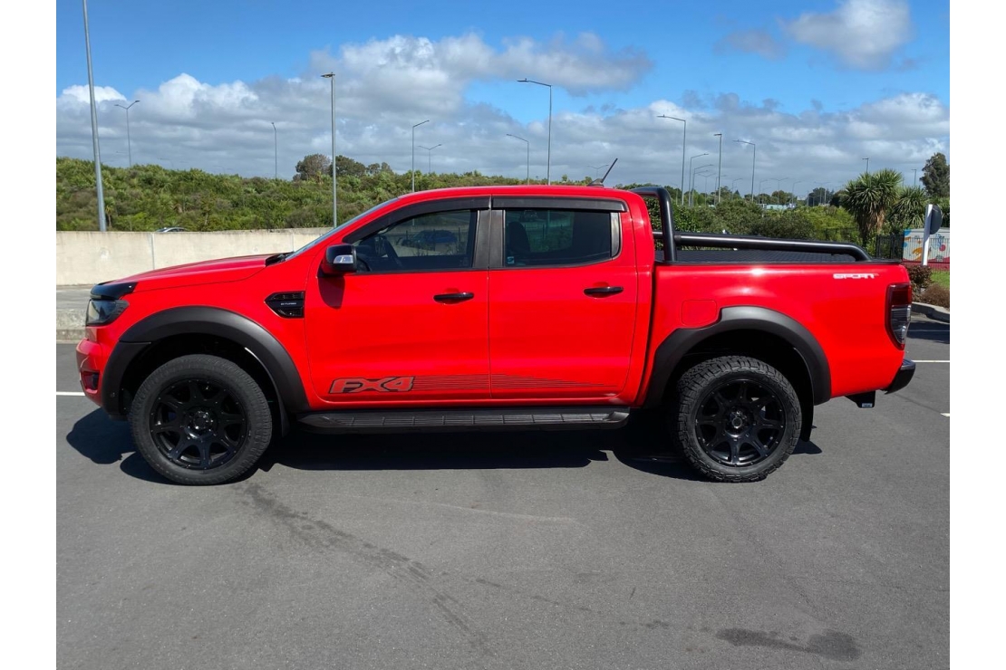 Check out our 2020 Ford Ranger FX4 in Ford Racing red! This is a great looking ute thats been set up properly. Sitting on a set of 20 inch mags wrapped in all terrain tyres, and fitted with a factory black FX4 sports bar plus a Beaut Utes black chequer plate hard lid, this Ranger means business.