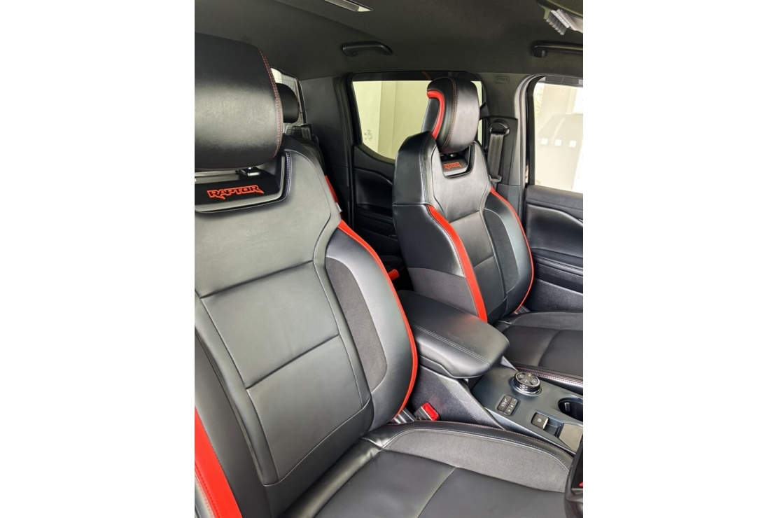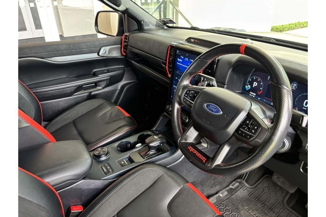 Raptor sports cabin with bolstered seats contrast detailing a multifunction steering wheel with cruise control and a large touch screen with wireless Apple CarPlay Android Auto Bluetooth and premium audio. Select... Read more