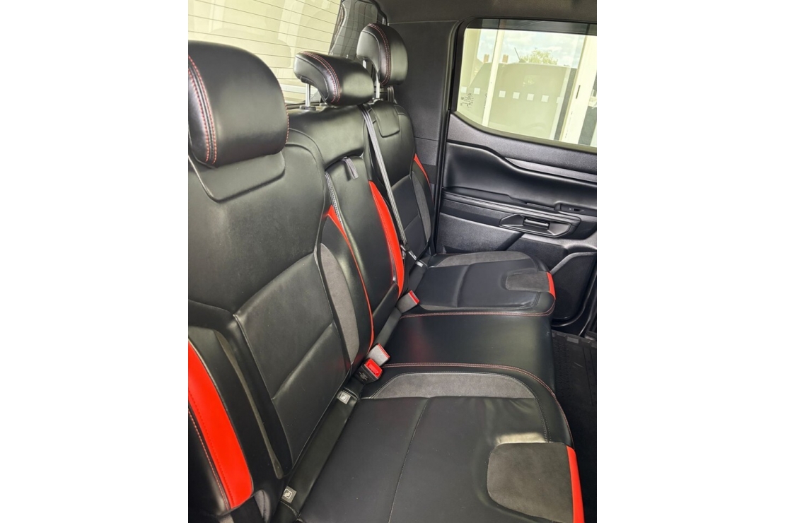 Electric sliding hard lid tow bar LED light bar Fox Live Valve suspension and upgraded off road protection. Reversing camera front and rear parking sensors lane keeping assist 360 degree camera hill descent control trailer sway mitigation and signature LED lighting.