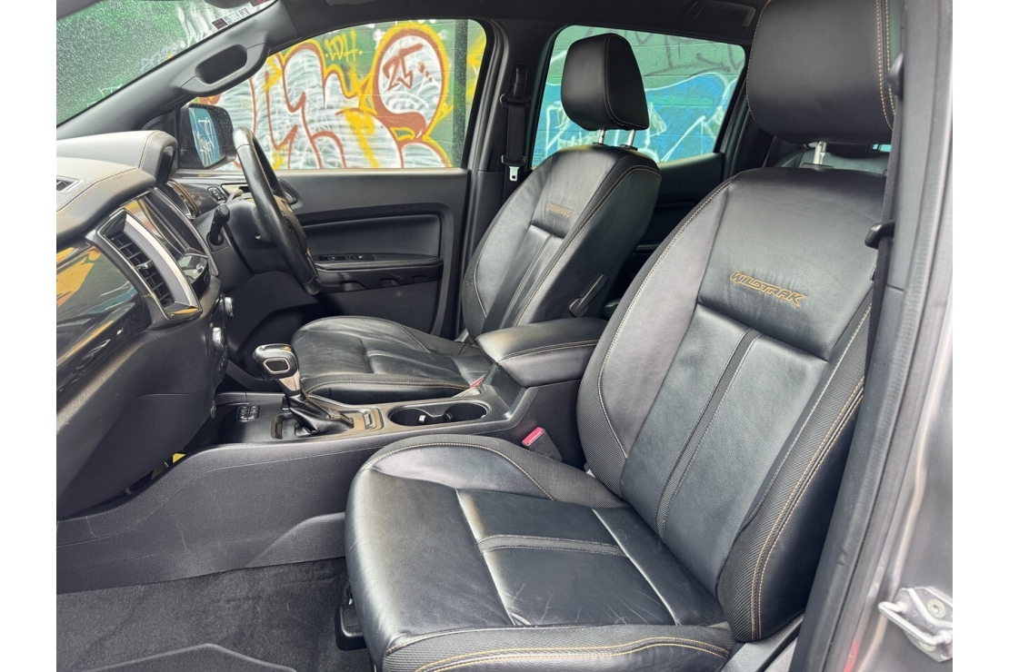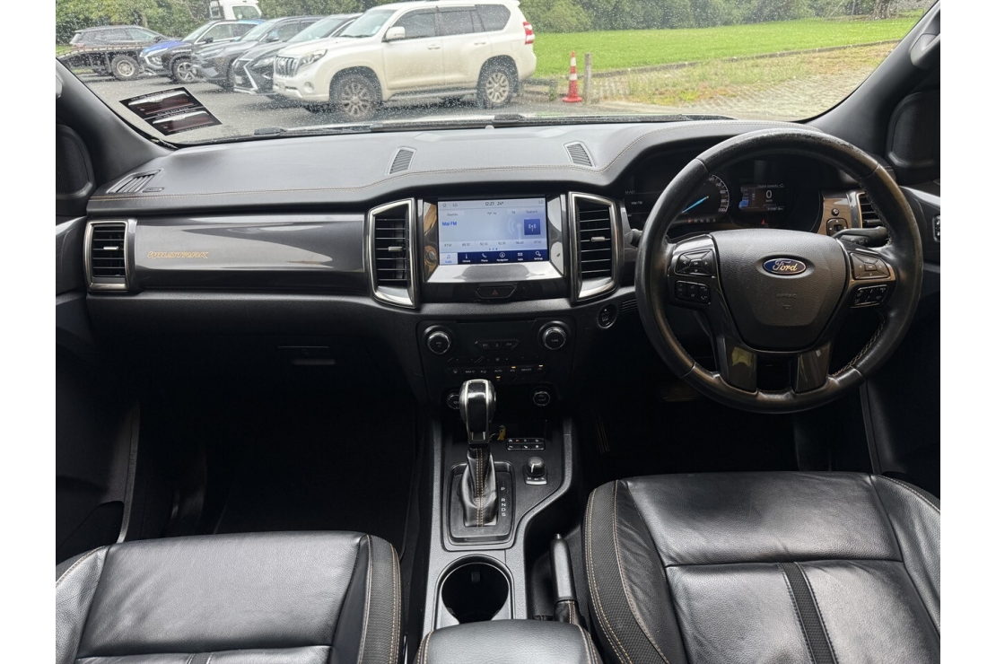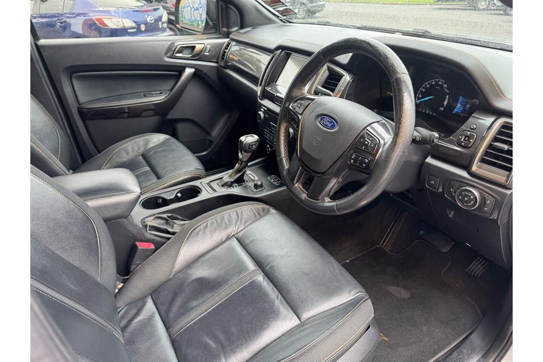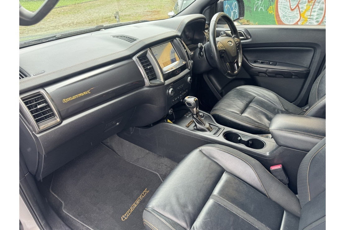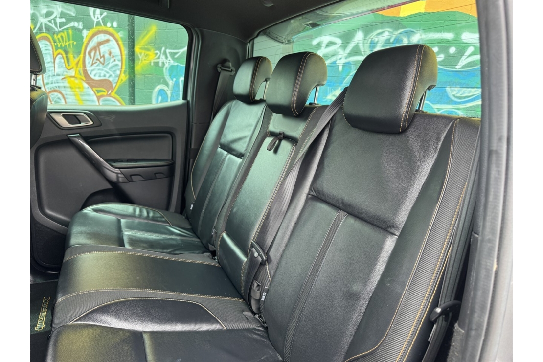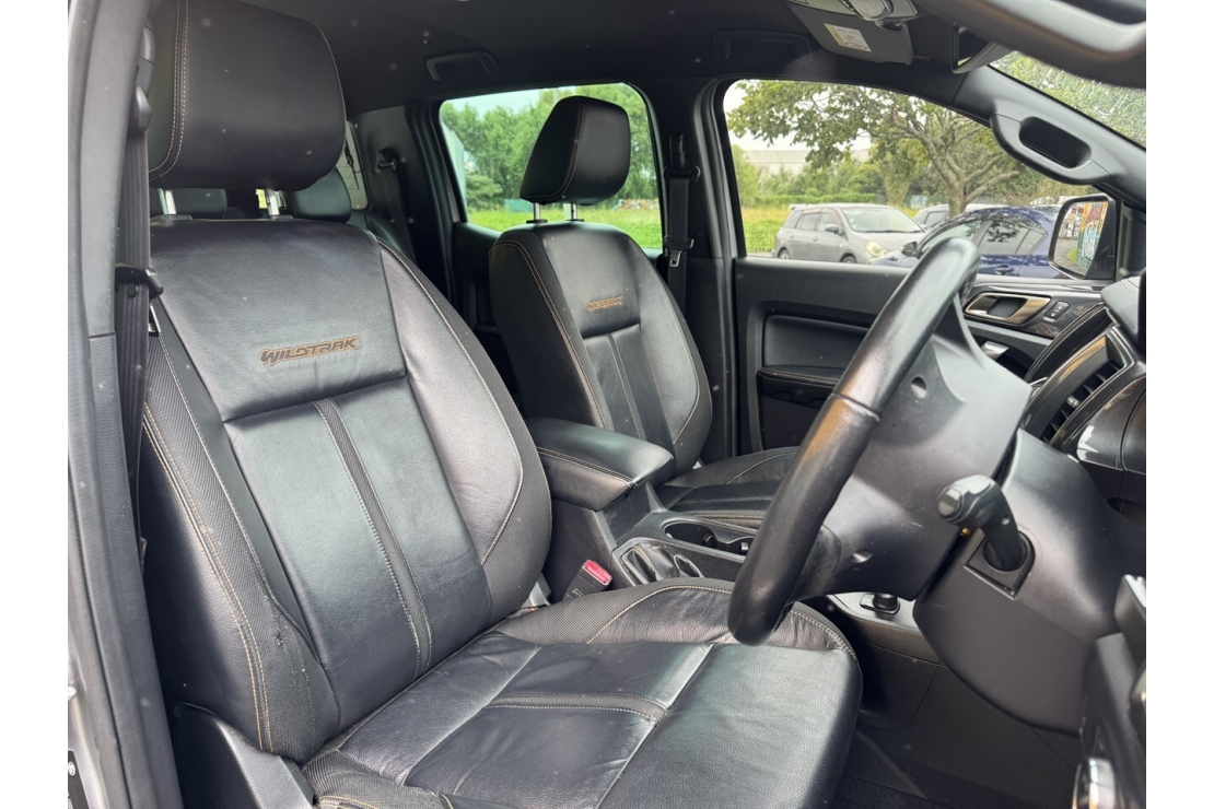Inside, the Wildtrak offers a full black leather interior, a multifunction steering wheel with cruise control, and a well equipped cabin designed for comfort and convenience. Technology highlights include touchscreen infotainment with Bluetooth and music streaming, along with a reversing camera for easy manoeuvring.