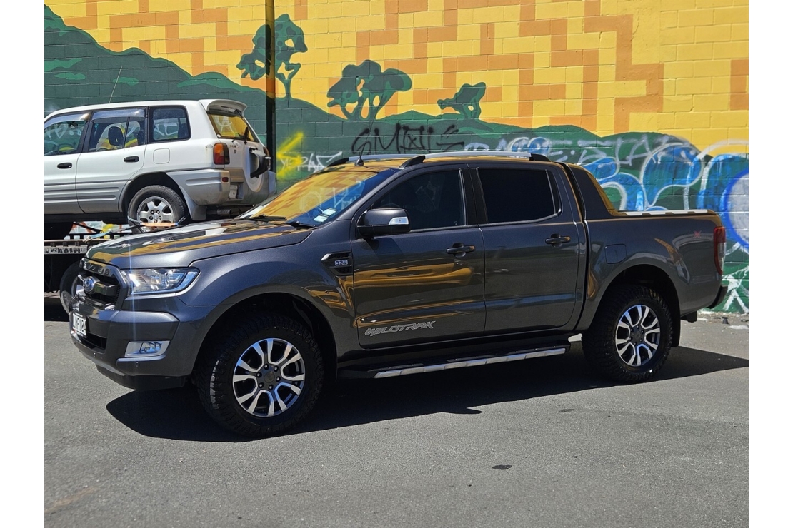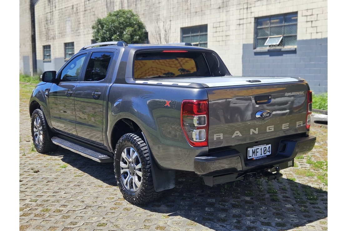New Zealand New 2018 Ford Ranger Wildtrak powered by the legendary 3.2 litre turbo diesel engine paired with a smooth 6 speed automatic transmission and dual range four wheel drive. Finished tough in metallic Grey and well equipped, this Wildtrak is built to work hard while offering comfort and technology.