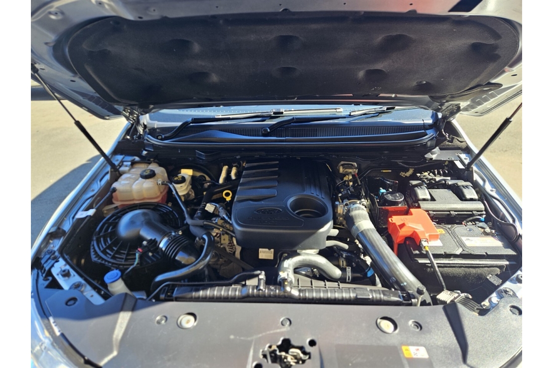 Equipped with flared guards, bonnet guard, running boards, and a tow bar, its built tough and ready for anything. The locking alloy roller lid keeps your gear secure and adds everyday practicality. Inside, the Wildtrak cabin sets itself apart with exclusive orange contrast stitching, embossed Wildtrak logos, premium seating, and a multifunction steering wheel. Technology includes touchscreen infotainment, Bluetooth, navigation capability, and cruise controL.