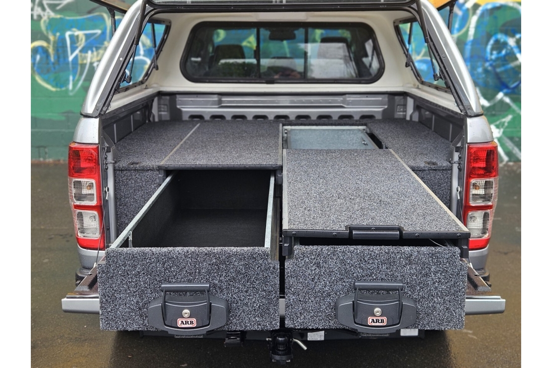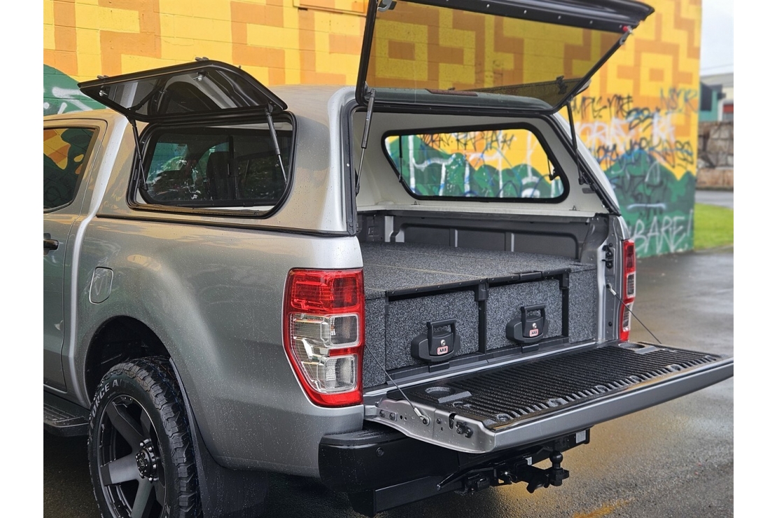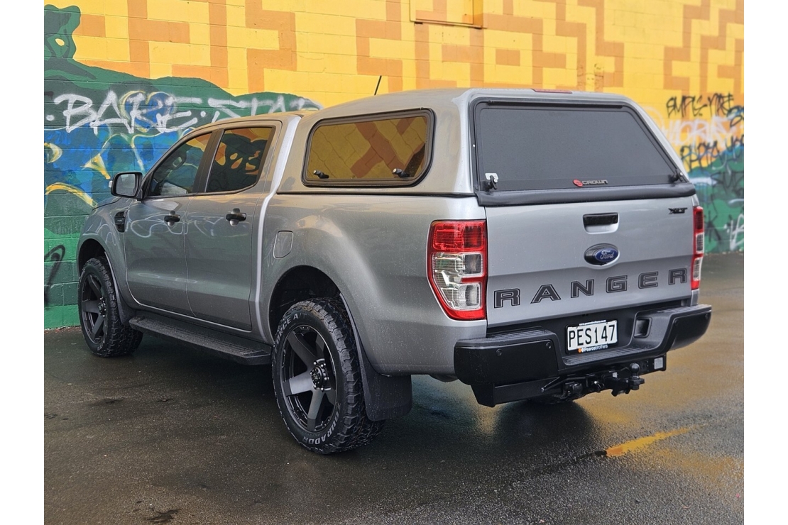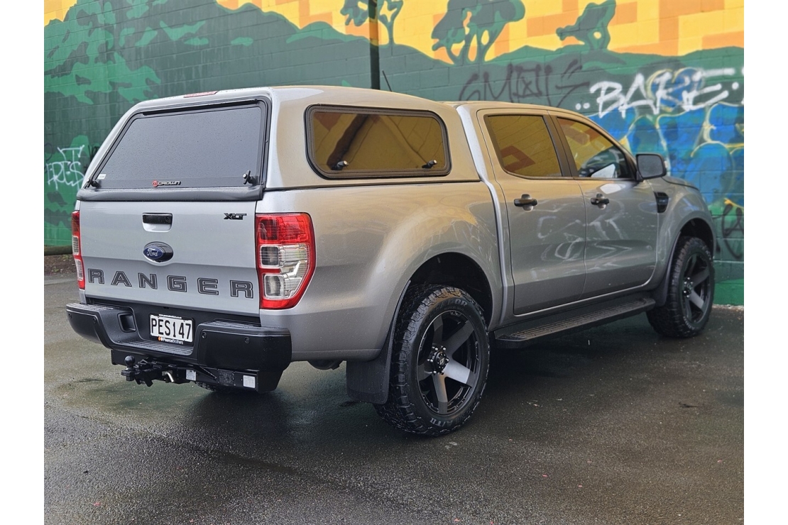 This NZ New 2022 Ford Ranger XLT combines proven power, premium styling, and practicality in one tough package. Finished in metallic grey with a full custom blackout, it stands out with brand new 20-inch alloys and tyres, running boards, and a colour-coded canopy with deck liner