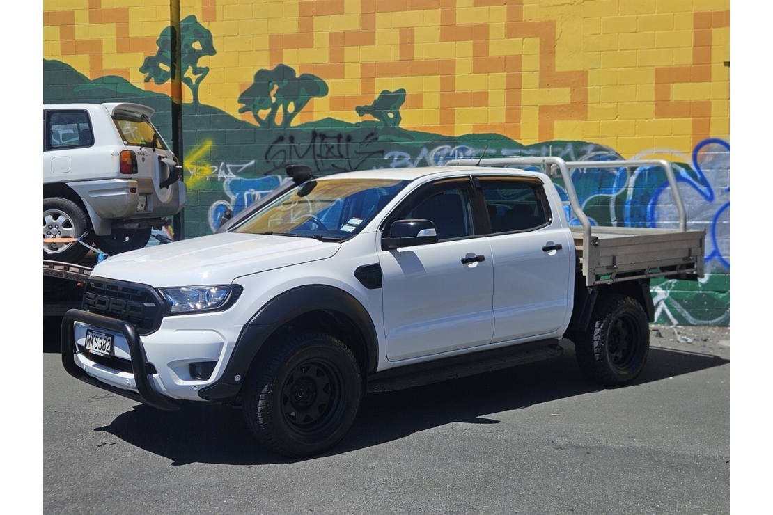 New Zealand New 2019 Ford Ranger XLT Double Cab finished in white with a tough custom blackout. This is a seriously well set up dual range 4x4 ute that is ready for work or play
