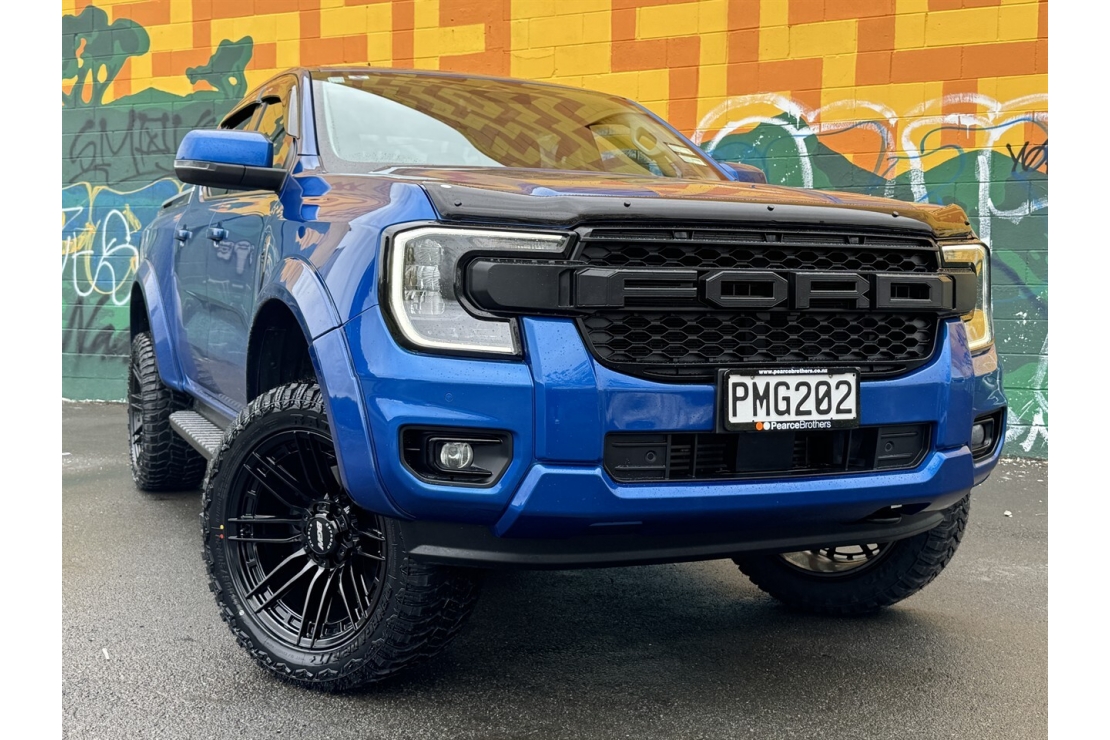 CHECK THIS OUT 2022 Ford Ranger XLT 2.0 Bi-Turbo Diesel Auto NZ New in Striking Metallic Blue with Custom Blackout, 20" Alloys, 2" Lift and Electric Roller Lid!