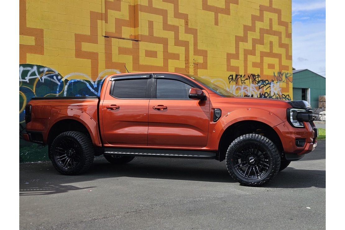 This one-owner NZ New 2022 Ford Ranger XLT is a standout ute that blends rugged ability with modern technology. Finished in striking Hot Pepper Red with a full custom blackout treatment, it sits on brand new 20" alloys with all terrain tyres and a professionally installed 2" lift kit that is fully legal.