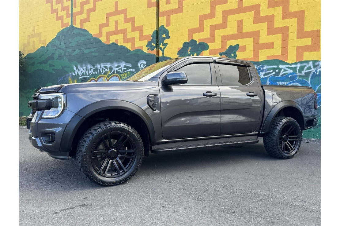 New Zealand New and presented in metallic grey with a sharp custom blackout, this 2023 Ford Ranger XLT Double Cab is a late model ute that delivers strong performance, modern tech and serious work capability. Powered by the proven 2.0L bi turbo diesel engine paired with a smooth automatic transmission, it offers excellent drivability with impressive power and efficiency , sitting on brand new 20 inch alloys and tyres and fitted with a locking alloy roller lid, deck liner, running boards, bonnet guard and monsoon shields. With rear diff lock and a 3,500kg braked towing capacity