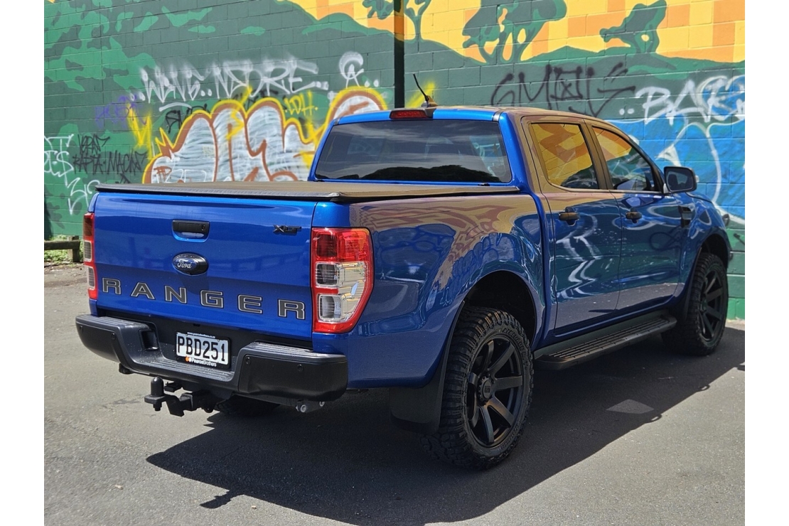 New Zealand New 2022 Road Ranger XLT Double Cab finished in stunning metallic blue with a full custom blackout. Sitting tough on brand new 20" alloys wrapped in all terrain tyres, this ute has the stance, presence and capability to match its reputation.