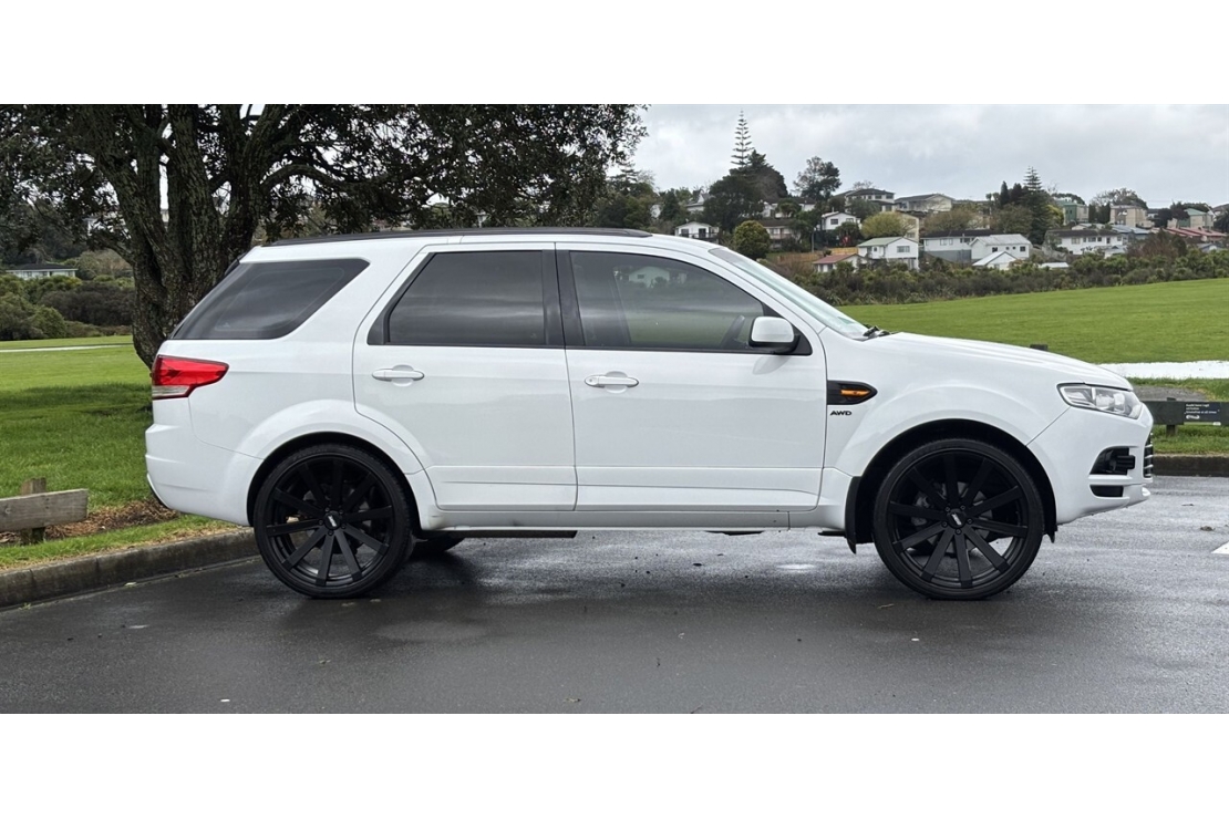 A practical and powerful family SUV, this NZ New Ford Territory TS is finished in White with a sharp custom blackout and sits on bold 22" alloys. Powered by the reliable 2.7L turbo diesel engine with automatic transmission and 4WD, it delivers smooth performance, excellent efficiency, and a strong 2.7-tonne braked towing capacity.