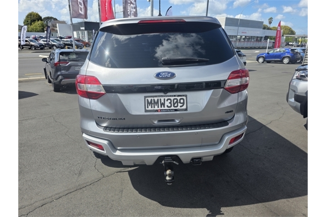 This 2019 Ford Everest Titanium 4WD is the flagship model in the Everest range - combining rugged off-road capability with premium features and 7-seat versatility. Powered by Ford's advanced 2.0L Bi-Turbo diesel engine, it delivers strong towing performance and fuel efficiency, while offering luxury-level comfort inside.
