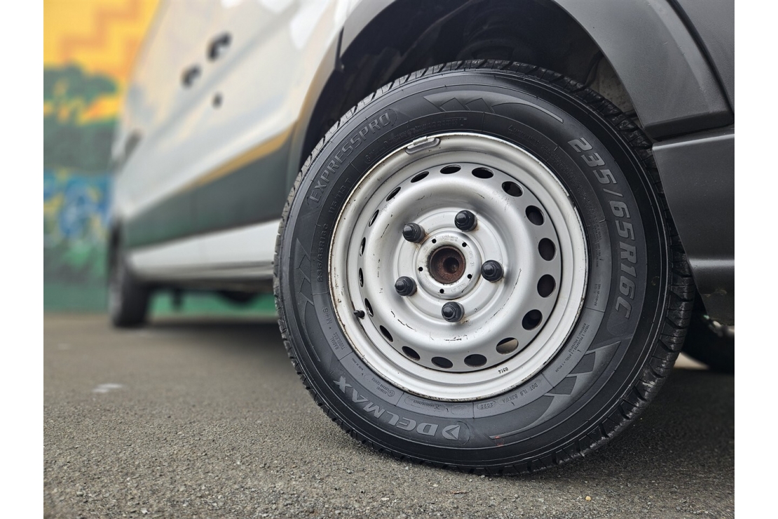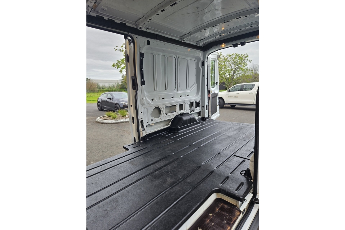 Finished in clean white, the exterior features dual sliding doors on both sides plus wide rear barn doors for maximum practicality. A reversing camera with parking sensors makes maneuvering easier, even in tight city spaces, while the tow bar-ready platform gives added flexibility for hauling trailers and equipment.