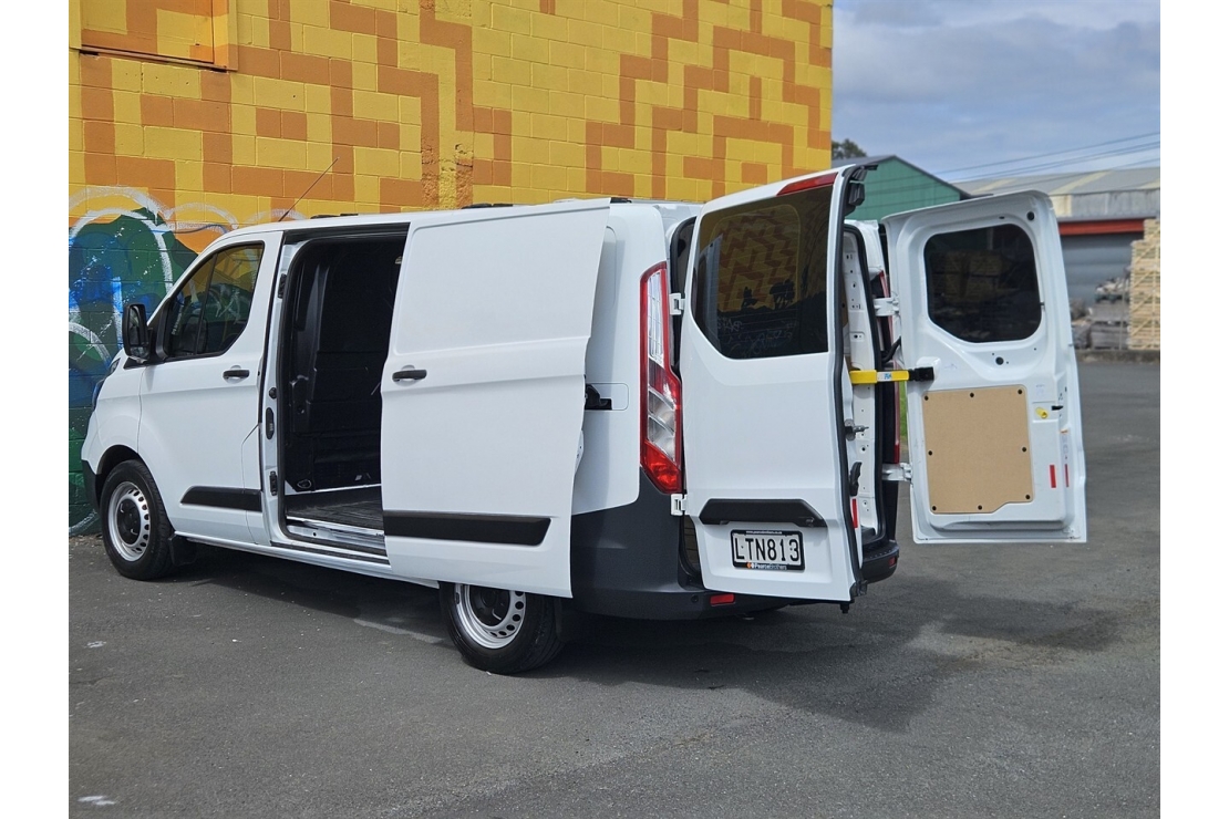 A versatile and reliable van, this 2018 Ford Transit Custom SWB Low Roof is NZ New and designed to handle both business and personal needs with ease. Finished in clean White with a practical short wheelbase and low roof setup, it offers excellent manoeuvrability while still providing a generous cargo area with rear barn doors and dual sliding side access.