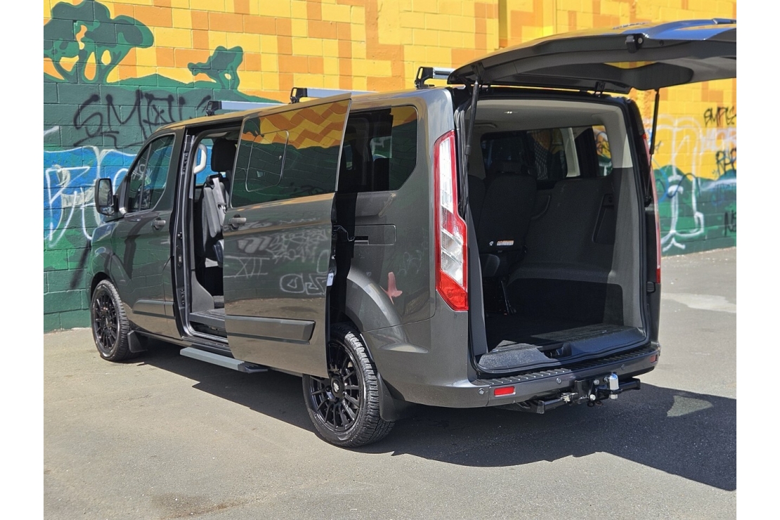 This 2018 Ford Transit Tourneo Trend is the ultimate family or executive mover, offering space, comfort, and refinement with NZ New reliability. Finished in stunning metallic grey and upgraded with brand new 18-inch BGW alloys, this 9-seater van combines practicality with modern style.