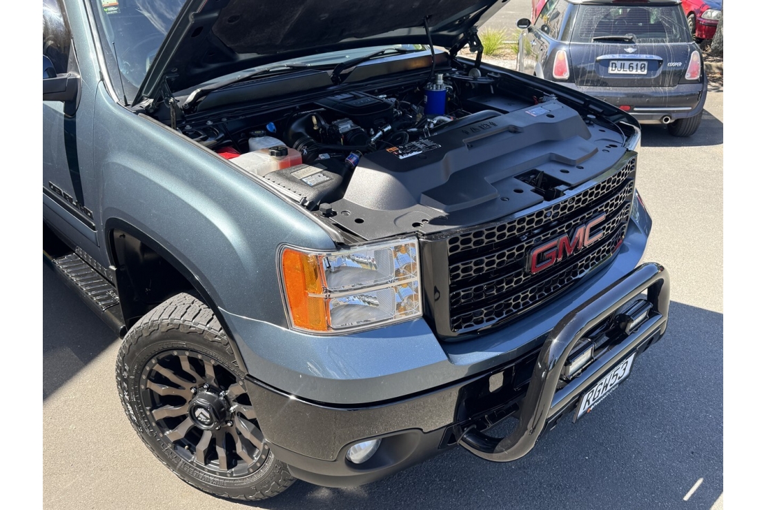 GMC Sierra Denali HD is a true heavy duty powerhouse. Finished in metallic Highland Green with a full custom blackout, it sits on 20 inch alloys and carries the legendary 6.6 litre Duramax diesel paired with the Allison LCT 1000 six speed automatic transmission. Producing around 296 kilowatts and 1037 newton metres of torque, these trucks are built to pull almost anything you can put behind them. Properly equipped, the Denali HD can tow up to approximately 5900 kilograms braked, making it one of the strongest towing platforms in ... Read more
