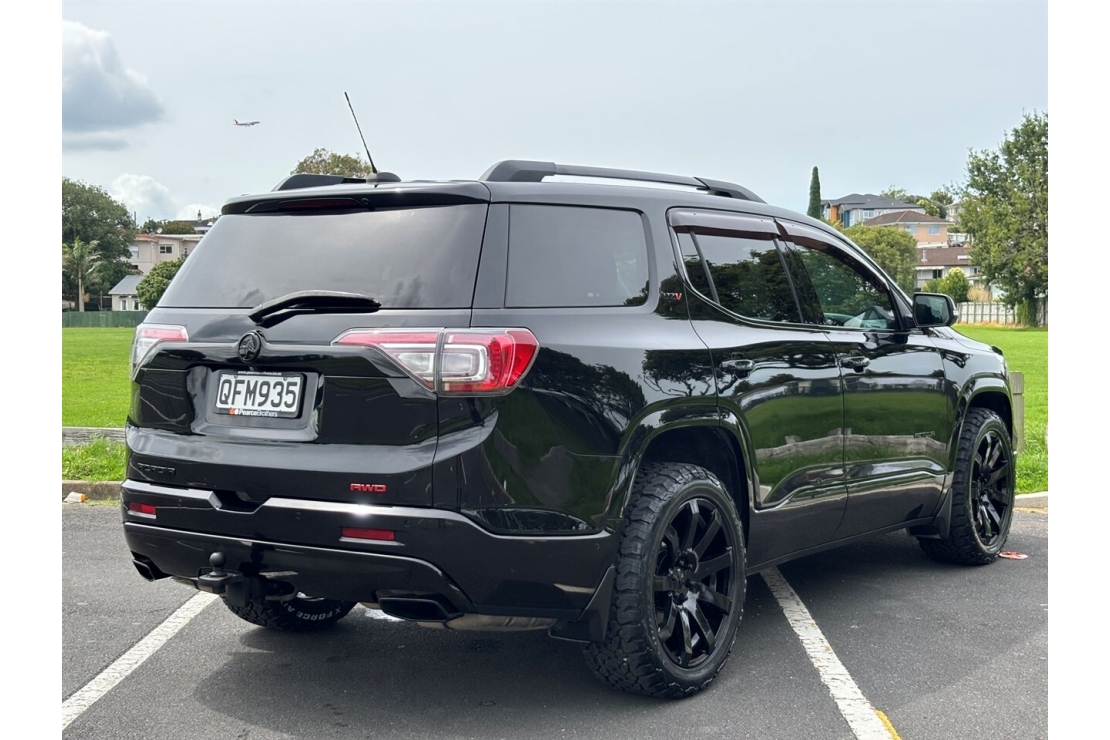 New Zealand New 2018 Holden Acadia LTZ-V, the top specification model, finished in metallic black with a custom blackout and sitting on brand new 20 inch alloys with all terrain tyres. A powerful, spacious, and well equipped 7 seater AWD SUV that is ideal for families or long distance touring.