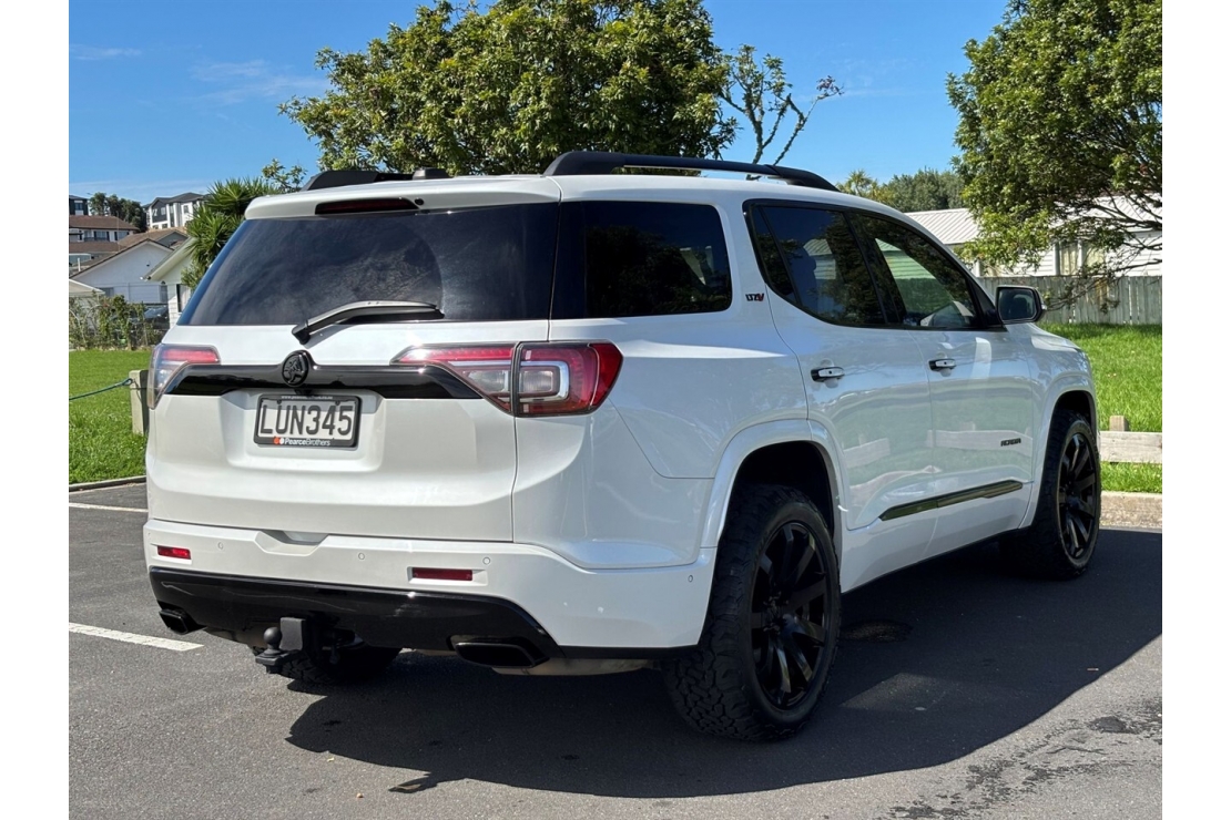 New Zealand New 2018 Holden Acadia LTZ-V, the top spec model powered by the smooth and powerful 3.6 litre petrol engine paired with an automatic transmission and intelligent 4WD. Finished in metallic white with a custom blackout, this Acadia presents extremely well and offers space, comfort, and technology