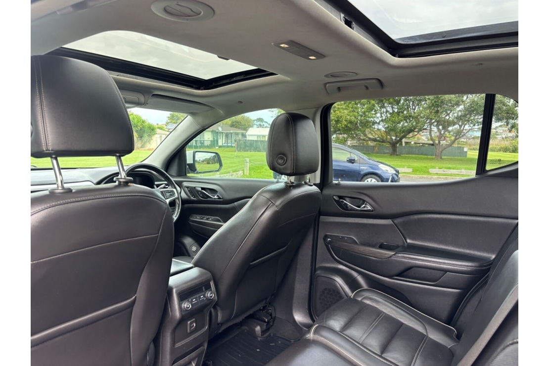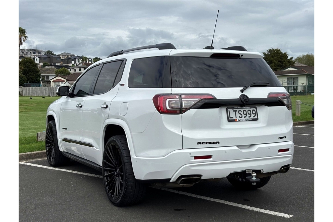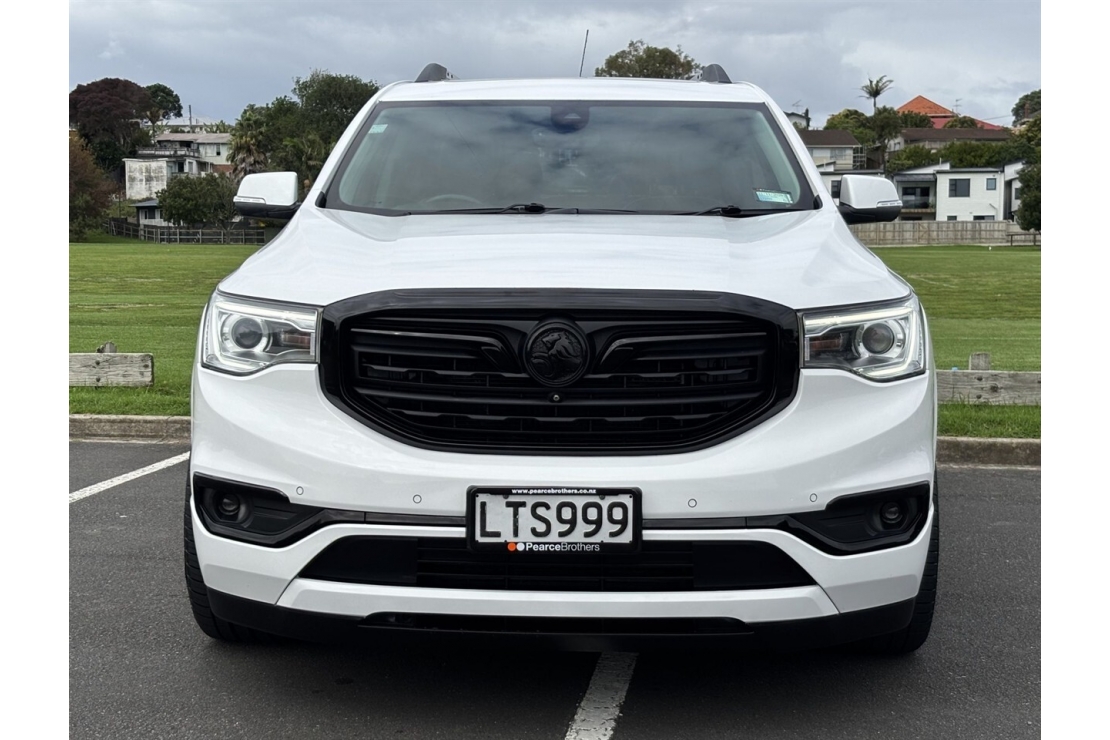 NZ new 2018 Holden Acadia LTZ V in white with custom blackout styling is a top spec 7 seater SUV built for comfort, space, and performance. Sitting on brand new 22 inch alloy wheels and tyres with a twin panoramic glass sunroof