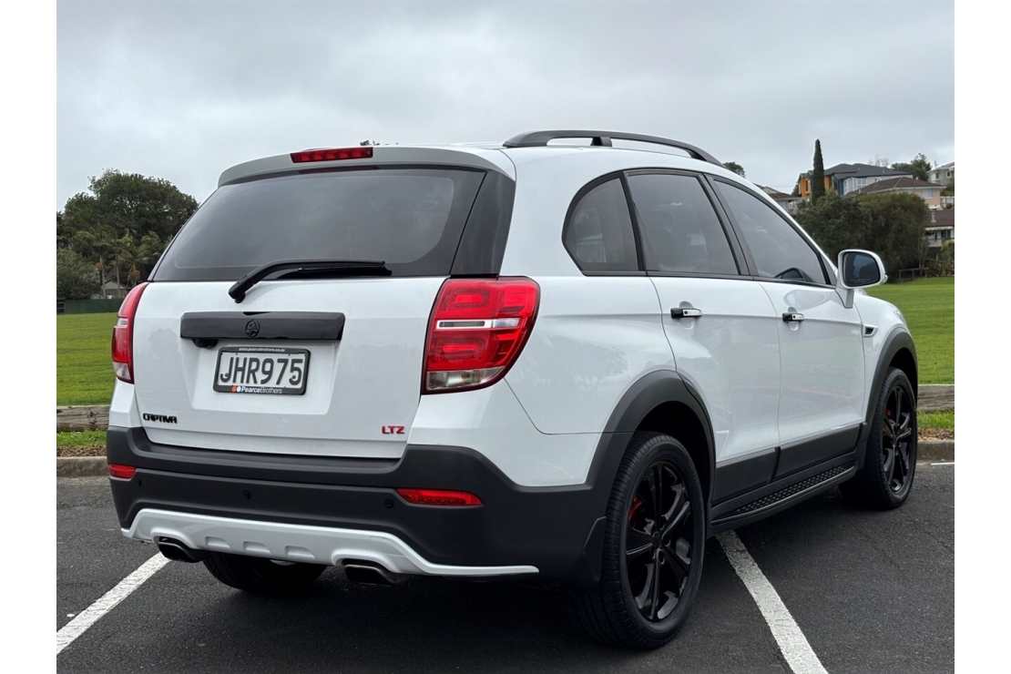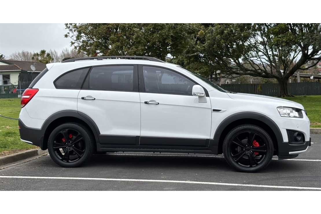 A practical and feature-packed SUV, this NZ New 2015 Holden Captiva 7 LTZ is a one-owner car with full service history, finished in White with a sharp custom blackout and sitting on stylish 19" alloys. Powered by a reliable 2.2L turbo diesel engine with automatic transmission and 4WD, it delivers confident performance, efficiency, and versatility for family life.