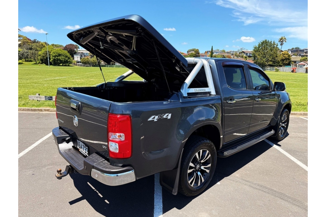 Here is a tough and tidy NZ New Colorado LTZ ready for work and weekend missions. Finished in metallic grey and sitting on 18 inch alloys this dual range 4x4 looks sharp and performs even better. The 2.8 litre turbo diesel engine delivers around 147 kW and 500 Nm of torque giving you strong pulling power for any job. With a braked towing capacity of up to 3500 kg