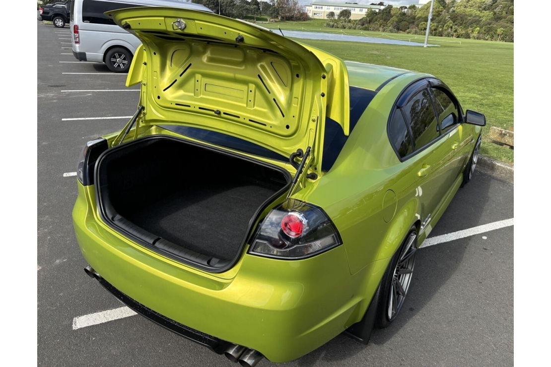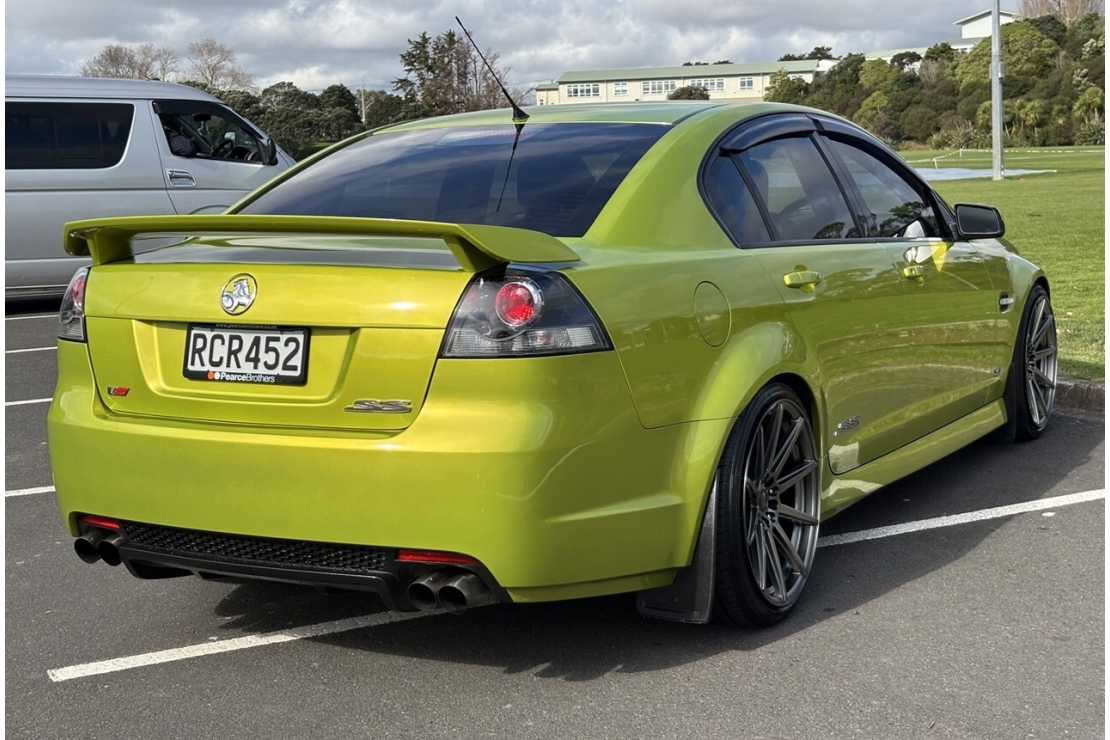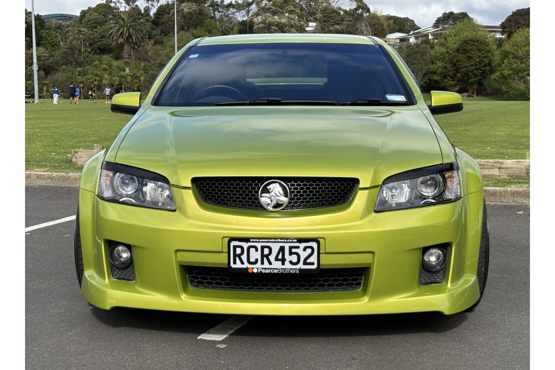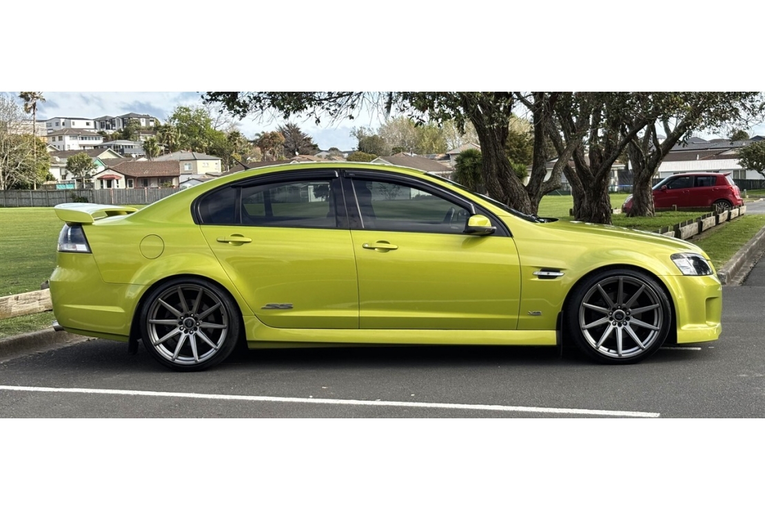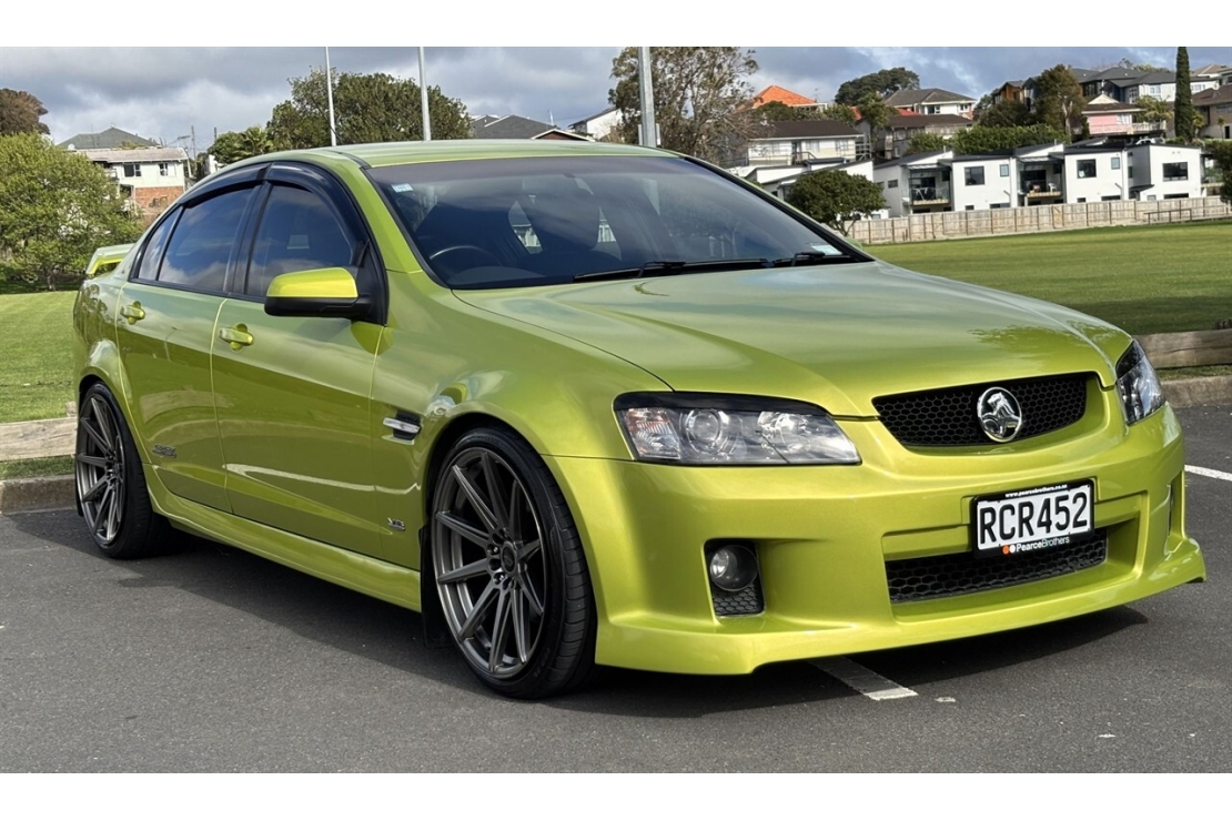 A true Aussie performance icon, this 2009 Holden Commodore SS-V sedan is NZ New and finished in rare metallic Crunch Mica, sitting on 20" alloys with a professional lowering kit for an aggressive stance. The legendary 6.0L V8 petrol engine has been Dyna tuned by Pro Tune to an impressive 272kW, paired with an X-Air intake and quad exhaust delivering all the V8 rumble youd expect.
