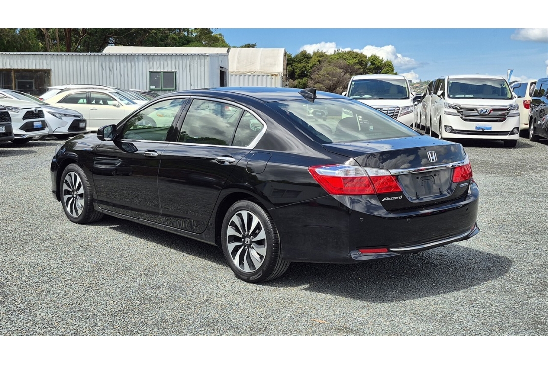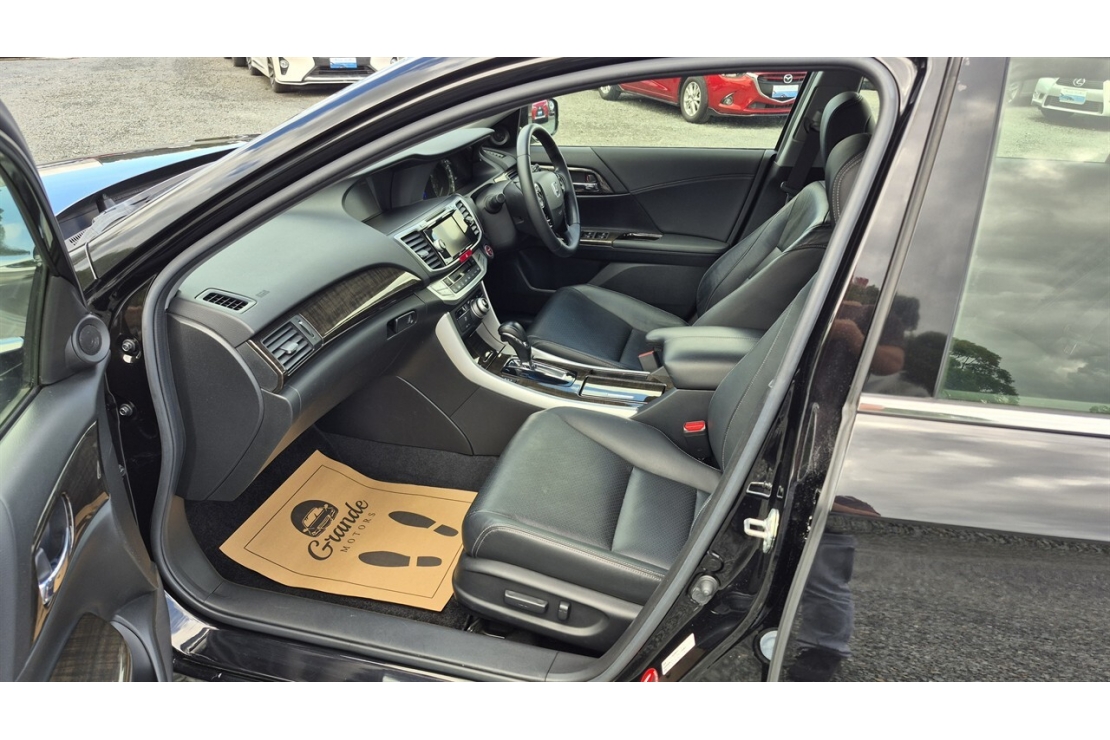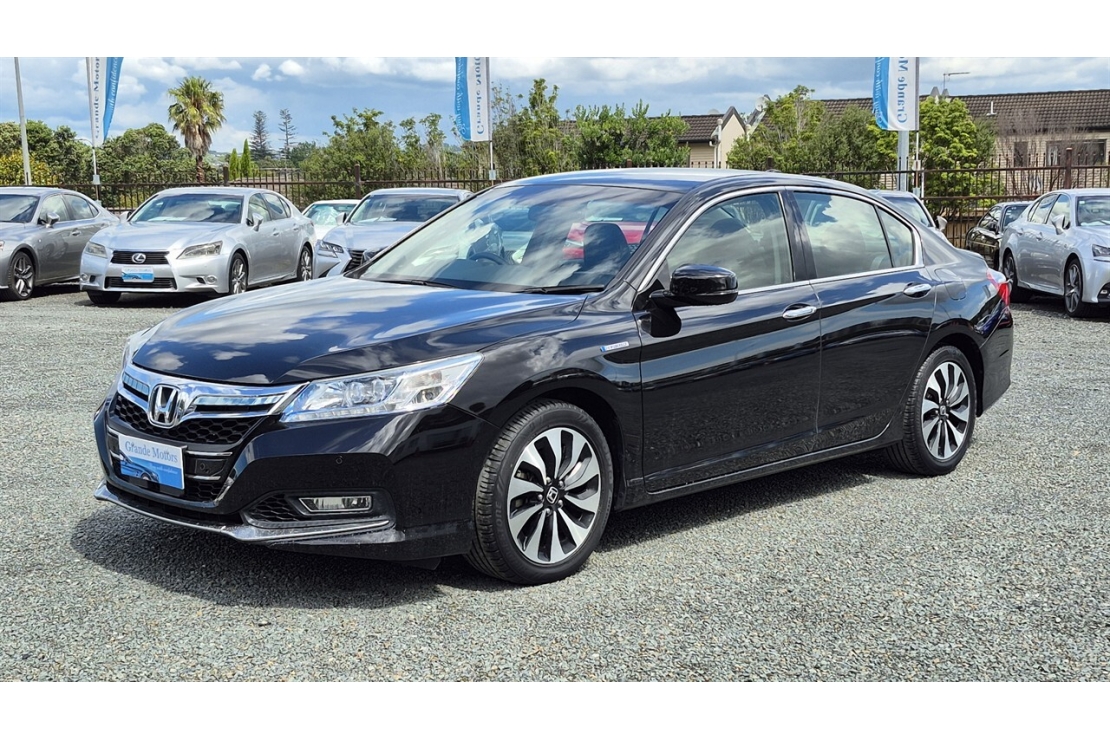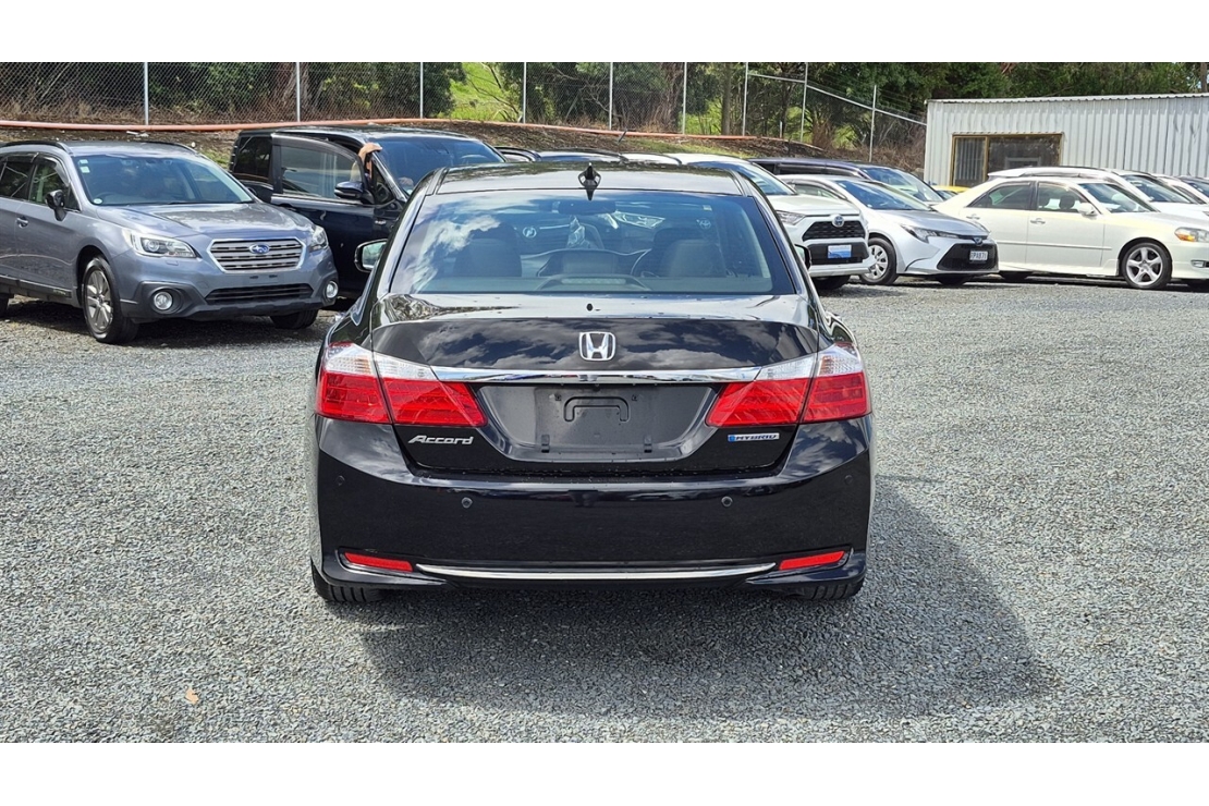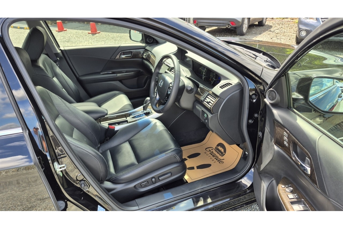 2014 Honda Accord hybrid in black colour with full black leather interior.