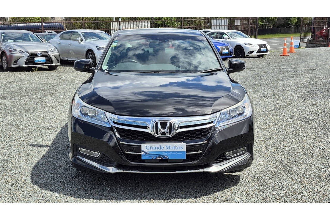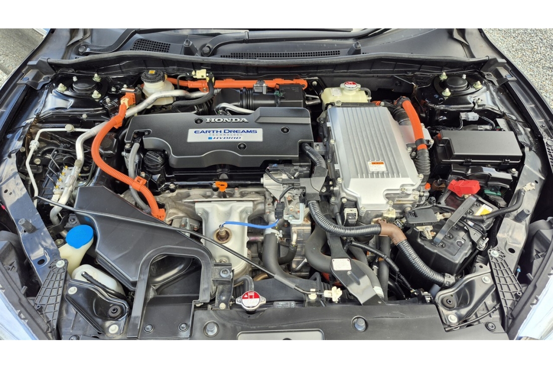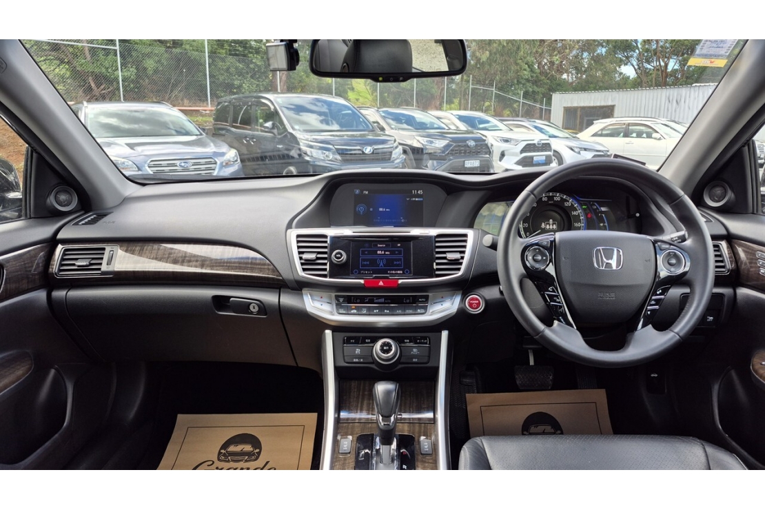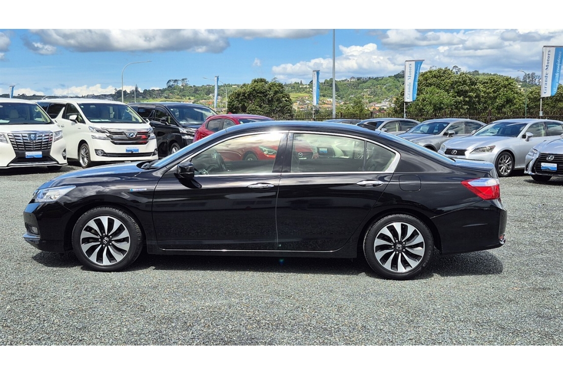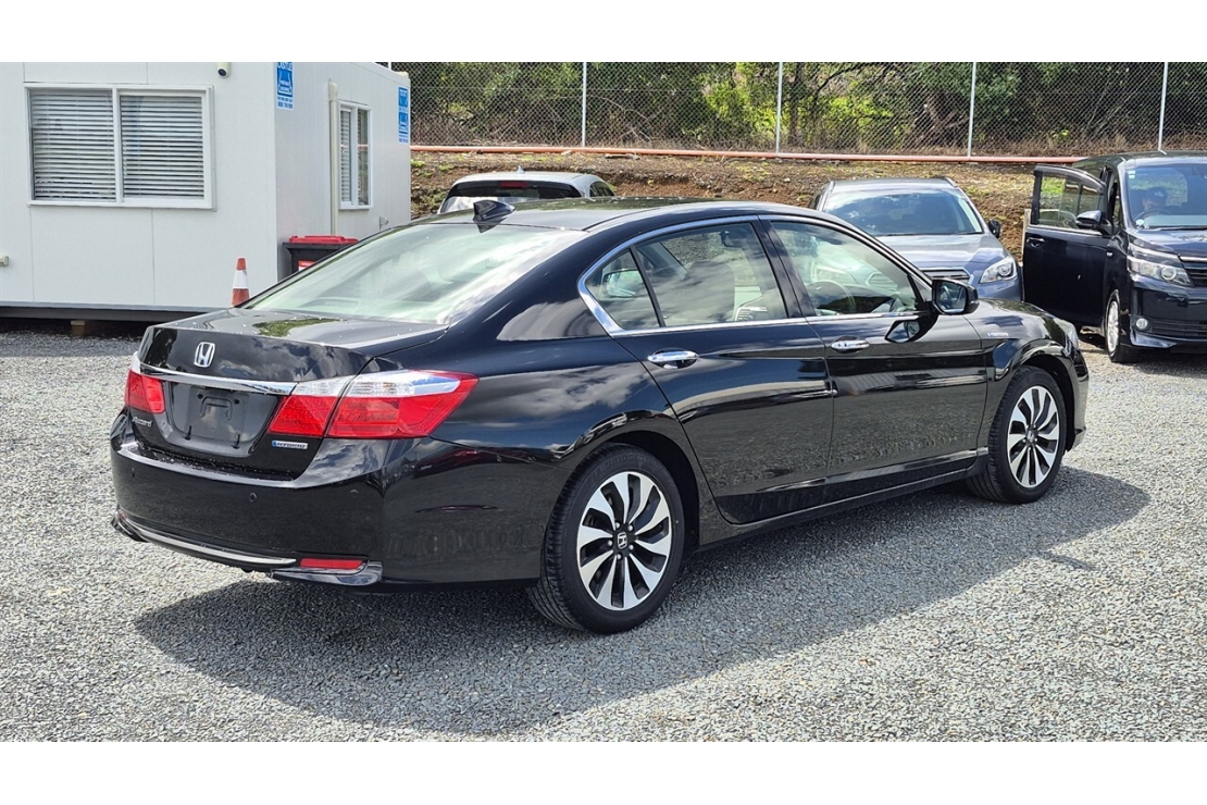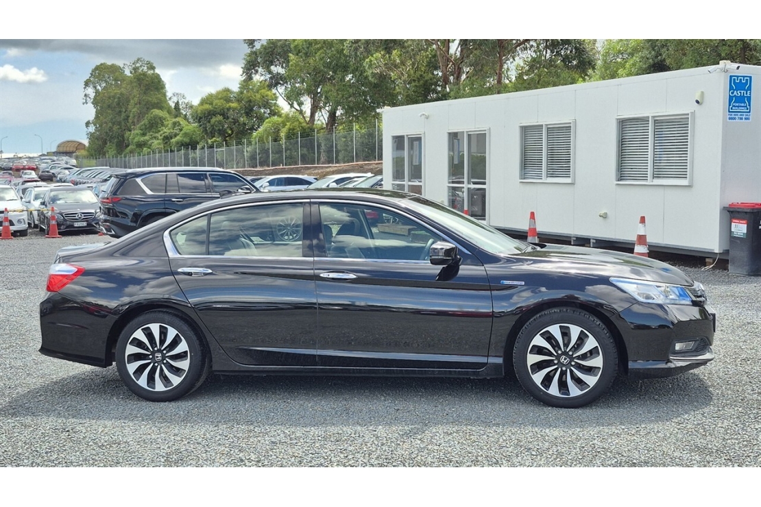 2014 Honda Accord hybrid in black colour with full black leather interior.