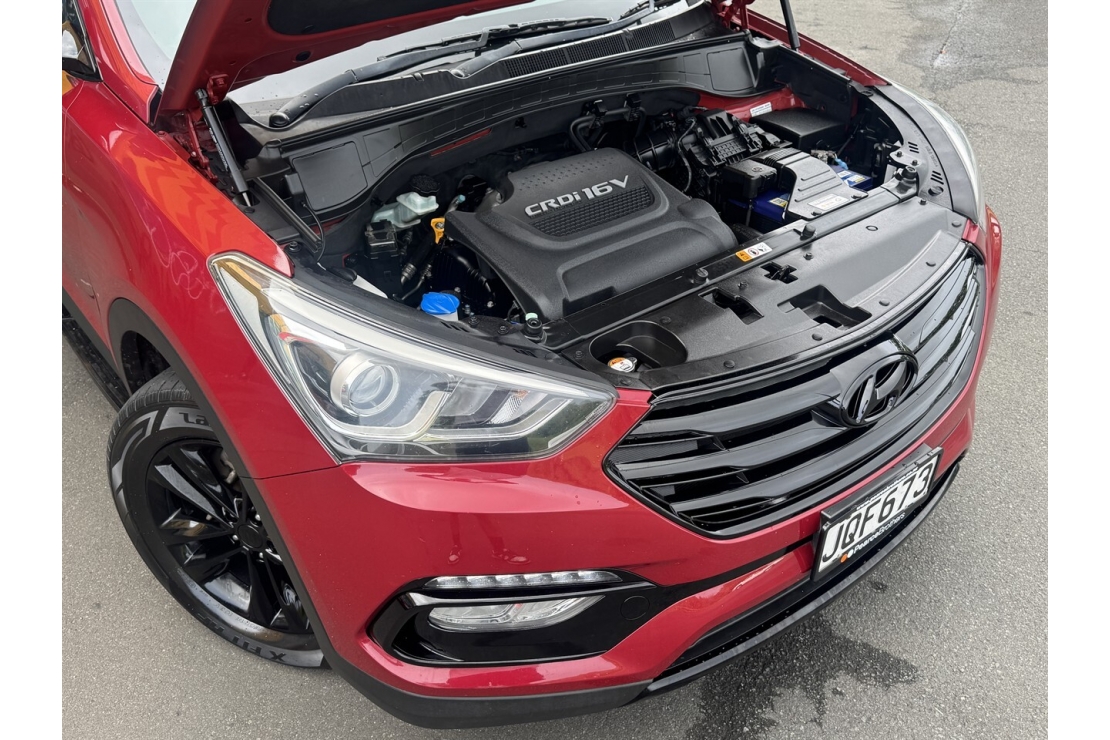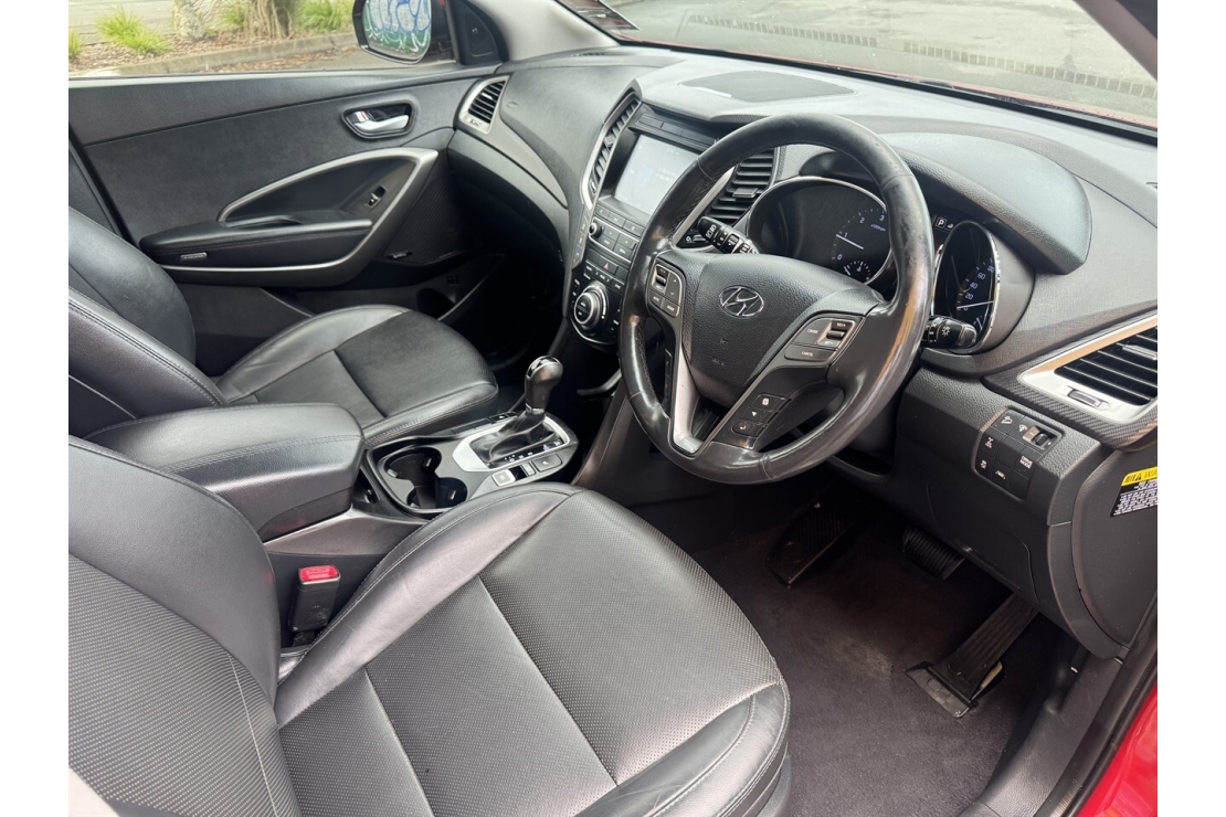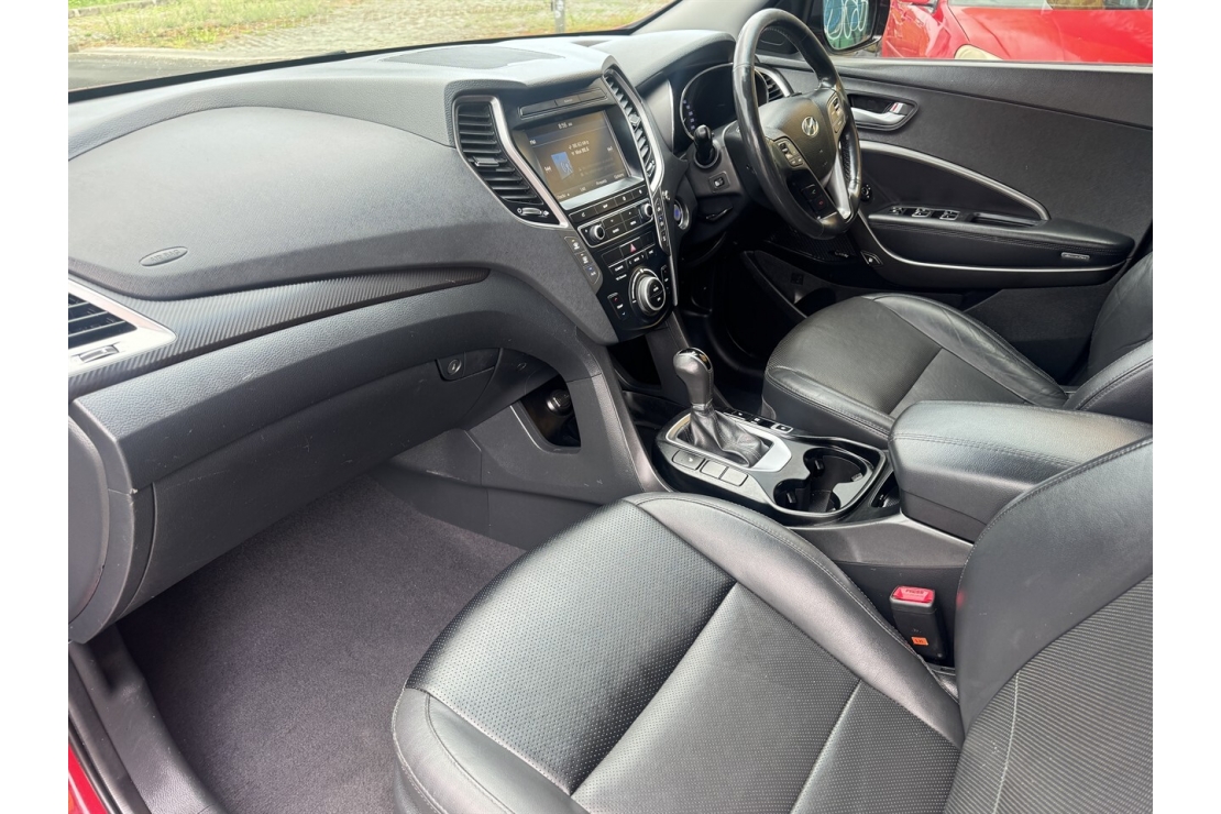 This New Zealand new 2016 Hyundai Santa Fe Elite is a well specd and highly practical seven seater SUV, ideal for families or anyone needing space, comfort, and all wheel drive capability. Powered by the proven 2.2 litre turbo diesel engine and paired with a smooth automatic transmission, it offers strong performance with excellent fuel efficiency.