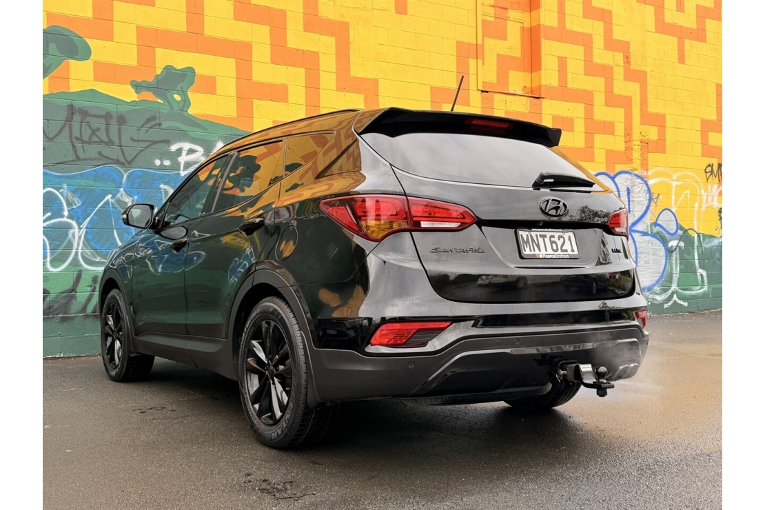 Finished in black with a full custom blackout, this Santa Fe has a sleek and modern look. Sitting on 18 inch alloys with a bonnet guard and tinted windows, it offers both style and practicality.
