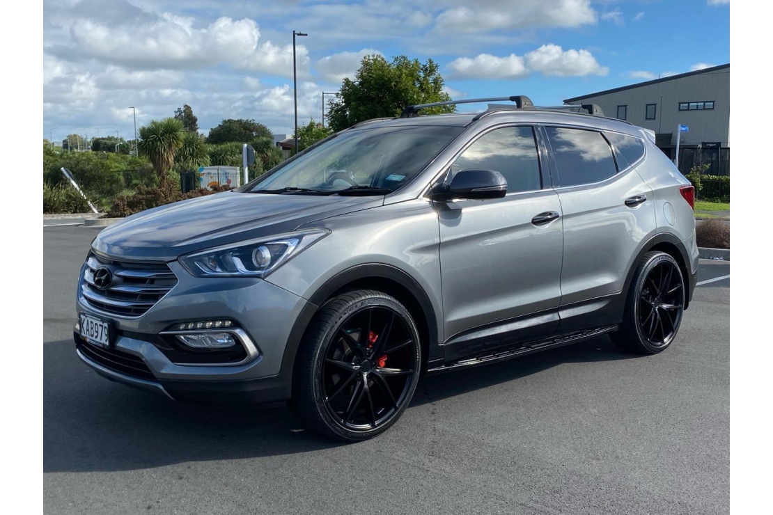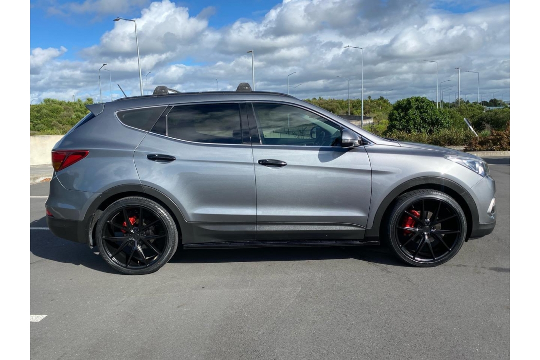 We have taken the Santa fe into our shop and done a full chrome delete all blacked out and midnight express tints .