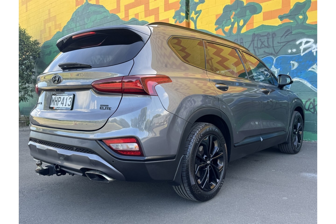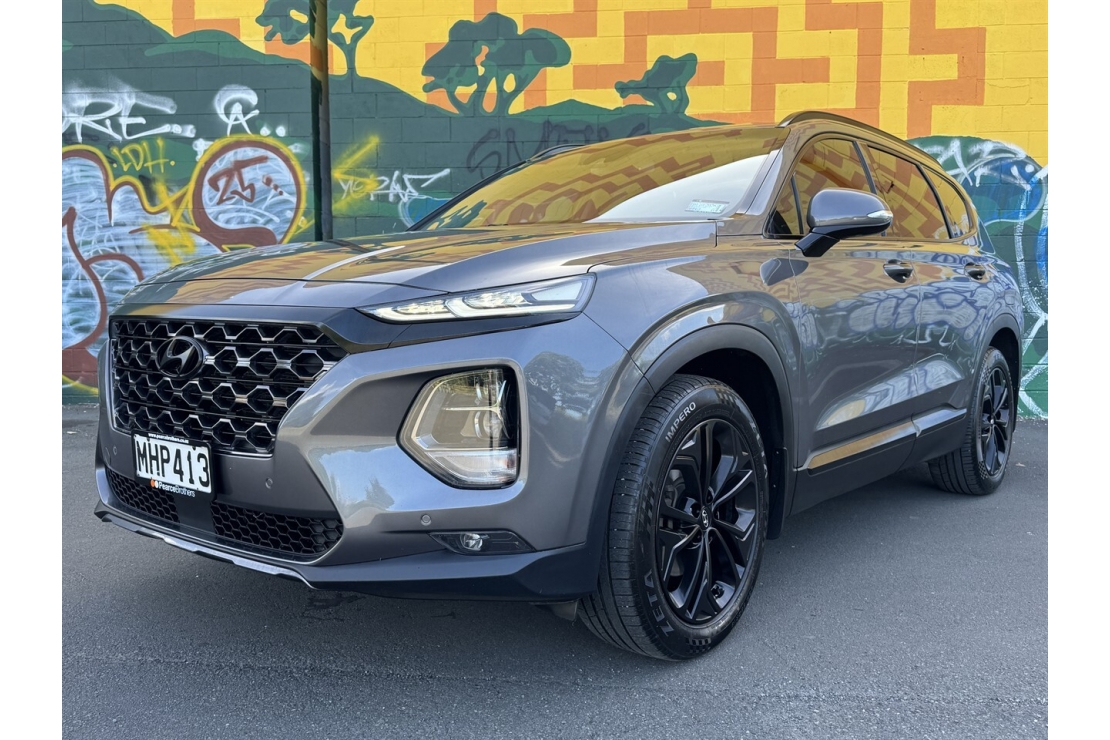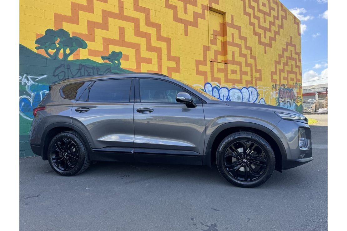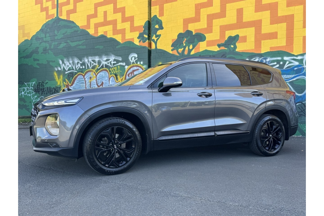 This 2019 Hyundai Santa Fe TM Elite is a well specified and practical seven seat SUV, ideal for families or anyone needing space, comfort, and all wheel confidence. New Zealand New and finished in metallic grey with a custom blackout, it sits smartly on 19 inch alloy wheels