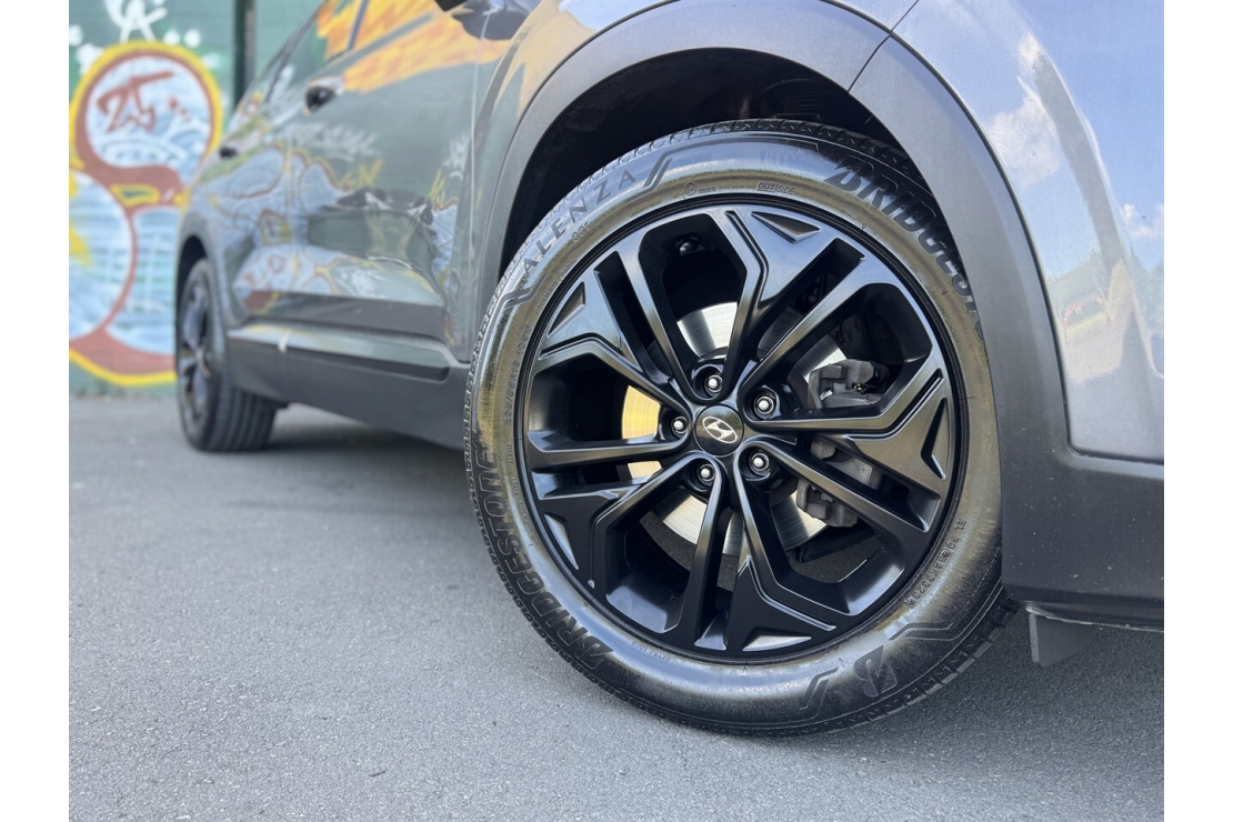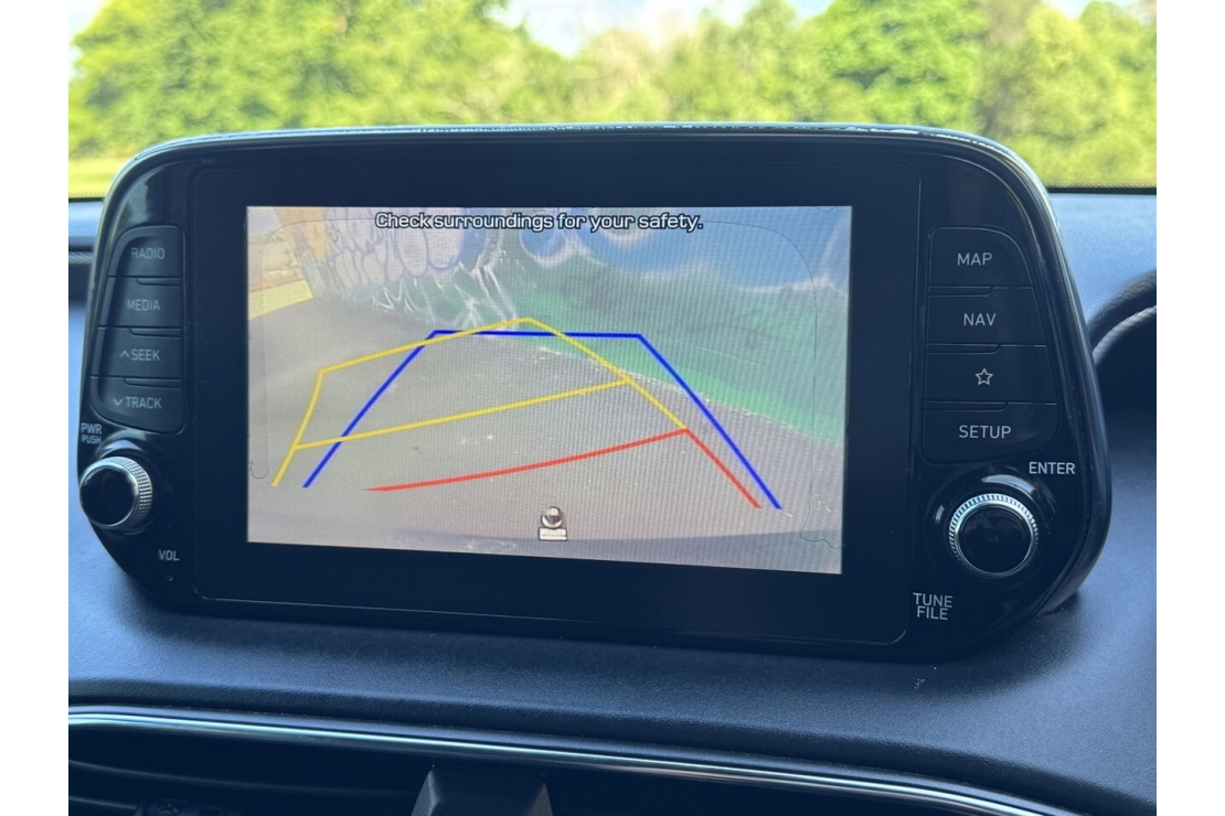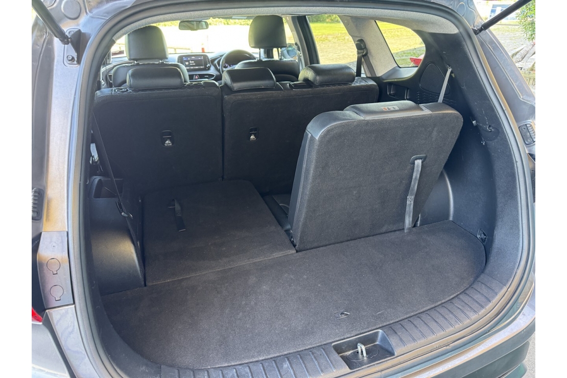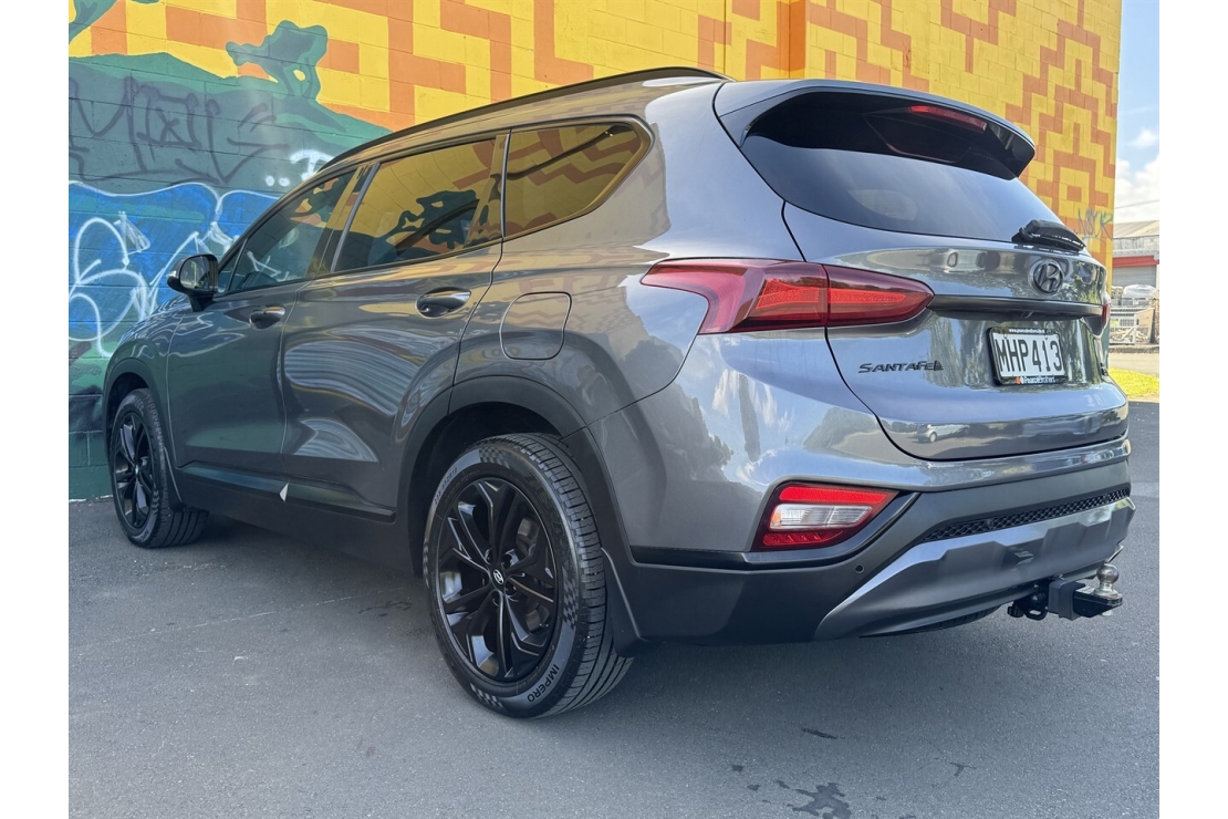 This 2019 Hyundai Santa Fe TM Elite is a well specified and practical seven seat SUV, ideal for families or anyone needing space, comfort, and all wheel confidence. New Zealand New and finished in metallic grey with a custom blackout, it sits smartly on 19 inch alloy wheels