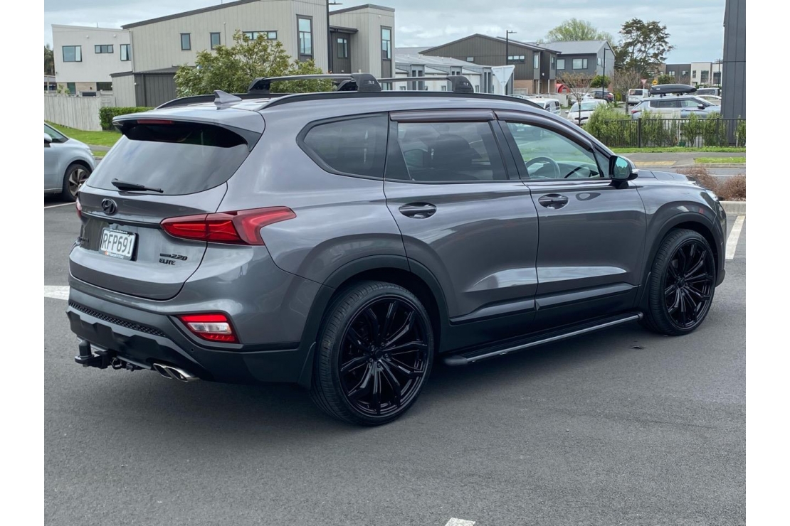 Finished in a sleek colour with a full dechrome and bold 22" black mags, this Santa Fe has been tastefully customised to turn heads. A front nudge bar & side running boards adds a rugged touch, while the leather interior ensures premium comfort for every passenger.