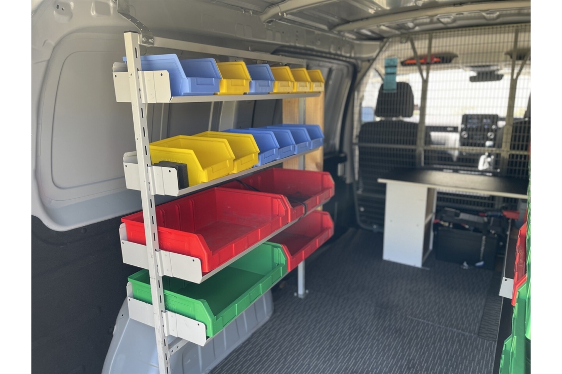 Finished in metallic grey, this van features dual sliding side doors and wide rear access, making loading and unloading quick and easy. Inside has been professionally set up with alloy storage trays and racking systems, providing organised tool storage and maximising usable cargo space.