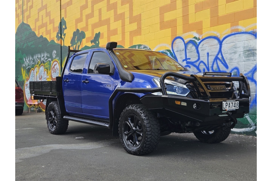 This NZ New 2018 Isuzu D MAX LS is a serious workhorse and adventure rig, finished in metallic blue with a full custom blackout. Powered by the legendary 3.0 litre turbo diesel with a six speed automatic and dual range four wheel drive, it delivers strong performance, proven reliability and a braked towing capacity of 3000KG.