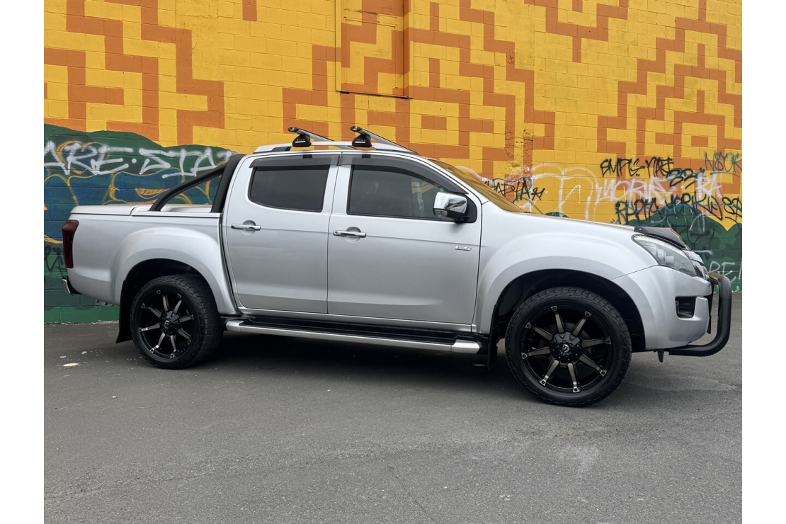 A tough, reliable ute that blends everyday practicality with rugged capability. This NZ New 2015 Isuzu D-Max LS-T is finished in sleek silver with a full custom upgrade including 20" alloys, colour coded hard lid, nudge bar, bonnet guard, roof racks, running boards, and tow bar, giving it strong road presence and serious functionality.