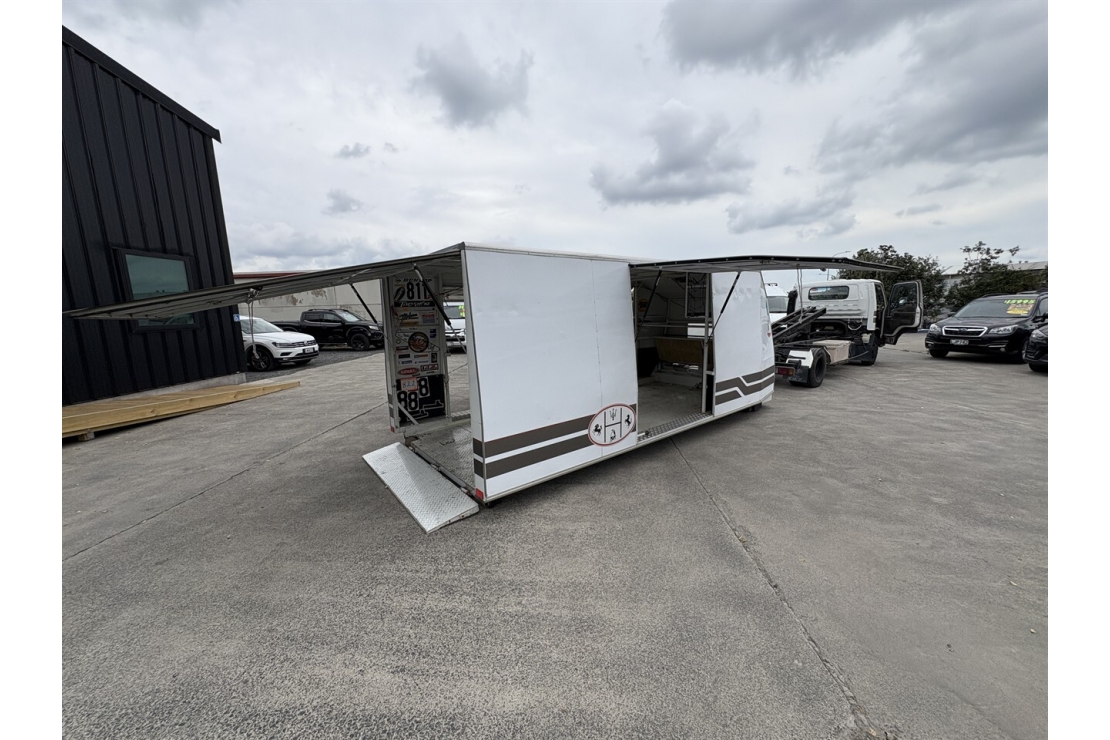 Its enclosed design shields high-value cars, bikes, or commercial equipment from the elements. With practical internal bay dimensions and a smooth-access ramp system, its built for efficiency on busy job schedules.