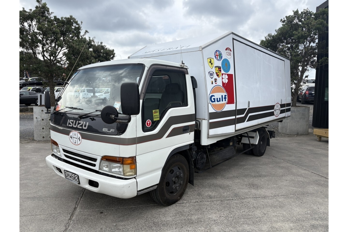 CHECK THIS OUT 1997 Isuzu Elf NPR70P Enclosed Vehicle Transporter 4.7L Diesel Manual in White Built Tough for the Job!