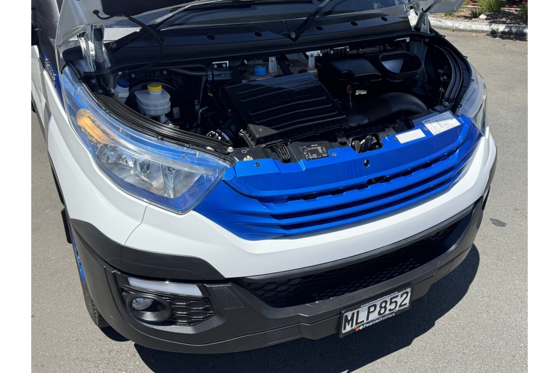This NZ New 2019 Iveco Daily 35S is a serious high roof workhorse Powered by a strong 3.0-litre turbo diesel engine producing 125kW of power and 430Nm of torque, paired with a smooth 6-speed automatic transmission, it delivers outstanding pulling power, refinement, and efficiency. With a massive 3,500kg braked towing capacity and over 1,300kg payload