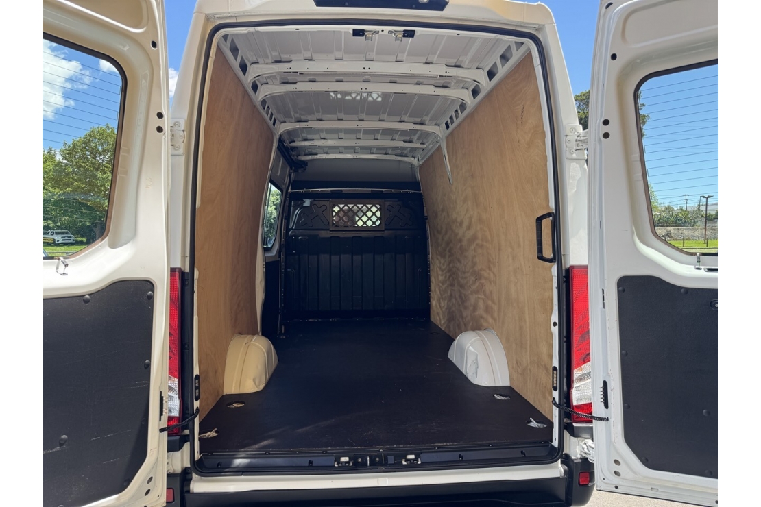 This NZ New 2019 Iveco Daily 35S is a serious high roof workhorse Powered by a strong 3.0-litre turbo diesel engine producing 125kW of power and 430Nm of torque, paired with a smooth 6-speed automatic transmission, it delivers outstanding pulling power, refinement, and efficiency. With a massive 3,500kg braked towing capacity and over 1,300kg payload