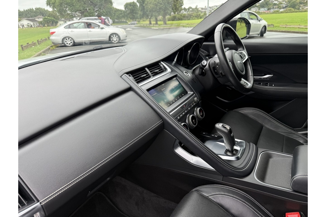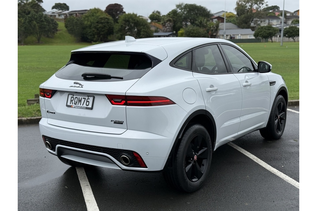 New Zealand New and finished in stunning Yulong White with a custom blackout, this 2021 Jaguar E-Pace P250 SE is a sharp, high-spec luxury SUV. Sitting on 18 inch Blade alloy wheels with red brake calipers and dynamic dual exhaust