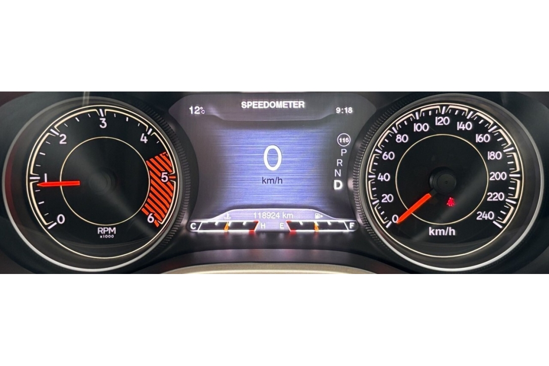 The cabin delivers premium comfort with full black leather seating embossed with the Jeep logo, plus advanced tech including Uconnect infotainment with Bluetooth, navigation, reversing camera, and parking sensors. A tow bar adds practicality, while luxury features like dual-zone climate control, keyless entry with push-button start, and heated seats make every drive more enjoyable.